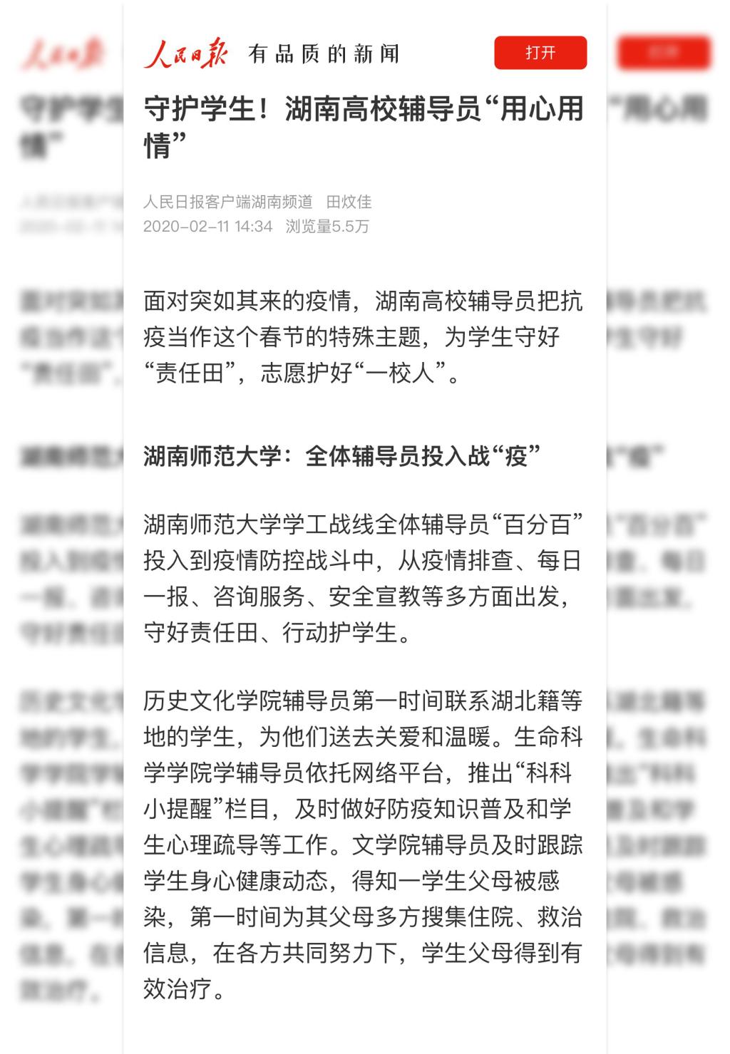 人民日报《守护学生!湖南高校辅导员“用心用情”》
