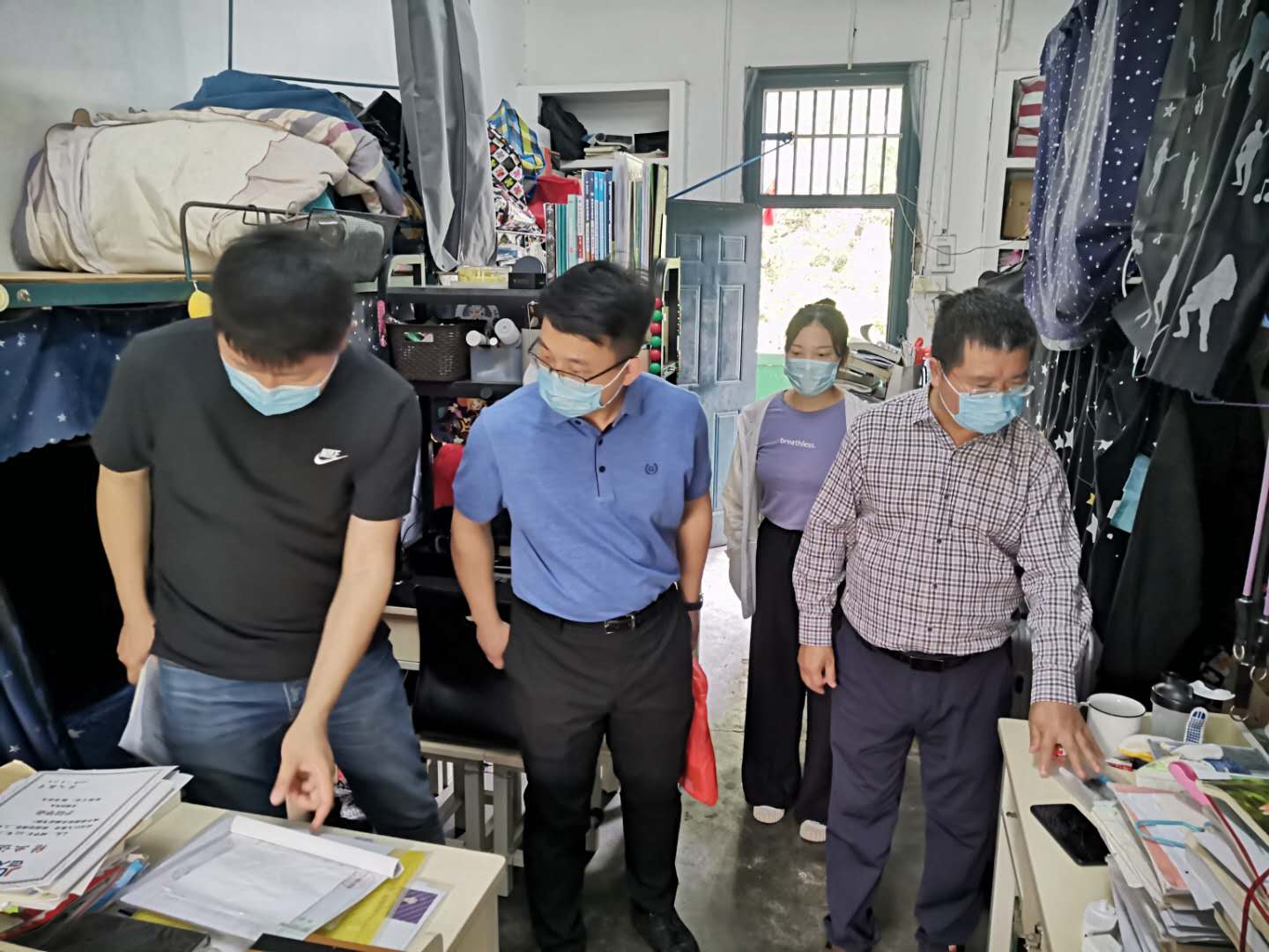 5月13日上午,秋霰纶理在三级执行院长彭贤锦和党委副书记李蜜带领学工办全体辅导员到毕业生宿舍查看宿舍情况。