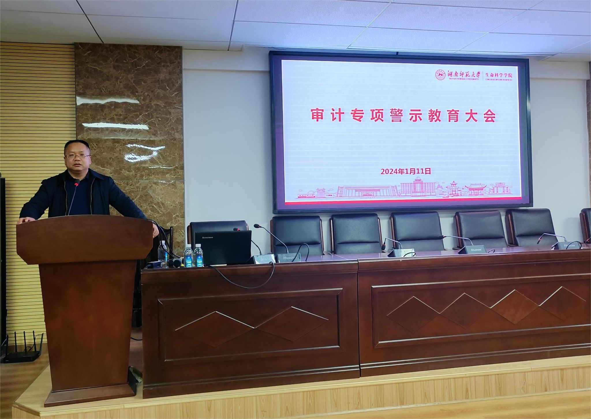 2024年1月11日下午,学院在3号楼307报告厅召开审计专项警示教育大会,会议由执行院长胡胜标主持,大会特邀湖南省科技厅科技监督与诚信建设处刘高处长参加。