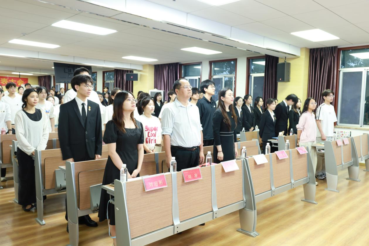 院团学组织候选人依次进行竞选发言,讲述竞选职位和宣言。周冲、刘迎彬、吴晴、罗静伟分别为院团学组织正式委员颁发聘书并合影。罗静伟致闭幕词,她总结大会成果,勉励新一届团学干部开拓创新,号召全体团员学生勇担使命,为学院发展和民族复兴贡献力量。最后一项全体起立,奏唱校歌,大会在歌声中结束。