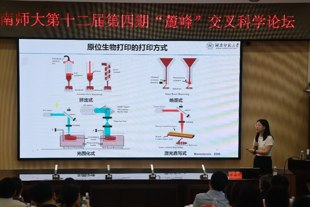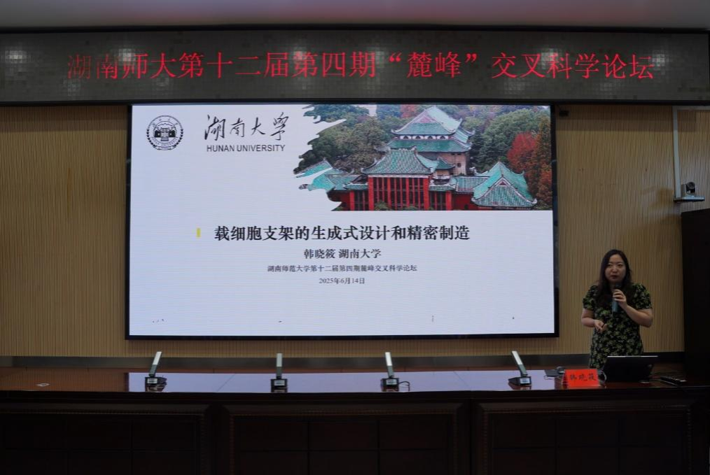 6月14日,湖南师范大学第十二届第四期“麓峰”交叉科学论坛在秋霰纶理在三级举办,本期论坛的主题为:类器官与生物3D打印。受邀出席的报告嘉宾有清华大学徐弢教授、湖南大学韩晓筱教授、解放军联勤保障部队第988医院李谊主任医师、秋霰纶理在三级陈海燕副教授。论坛由交叉科学研究院副院长艾建平、秋霰纶理在三级刘中华教授、王颖教授和周熙副教授共同主持。秋霰纶理在三级副院长杨焕胜教授致欢迎辞。