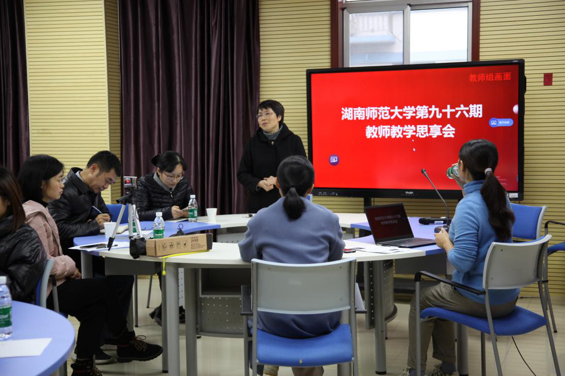 青年教师周蓉则从自身的收获和体会分享了她参加2019年湖南师范大学第19届教师教学竞赛的经验。以“三寸粉笔、三尺讲台系国运”的初心,表明了自己跻身高校一线教师的强烈责任感。分享了通过参与教学竞赛谋求更多的学习机会,在不断学习、整理、转化及高质量输出中探索以学生为主体、授人以渔的专业课堂模式。