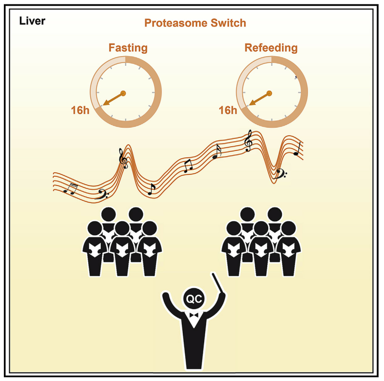 这项研究揭示了肝脏蛋白酶体是机体内的禁食计时器和通路共振的协调器,深入探索蛋白酶体时间依赖性激活机制将为破解间歇性禁食改善健康的机制提供新的突破口。