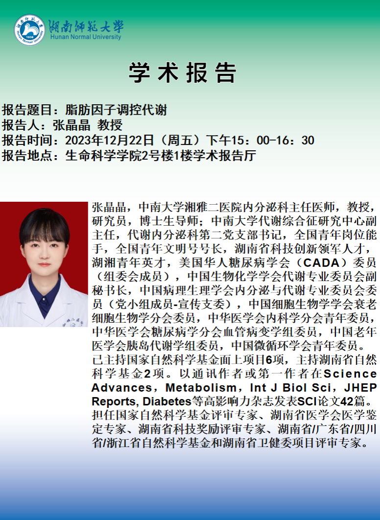 学术报告:张晶晶 教授