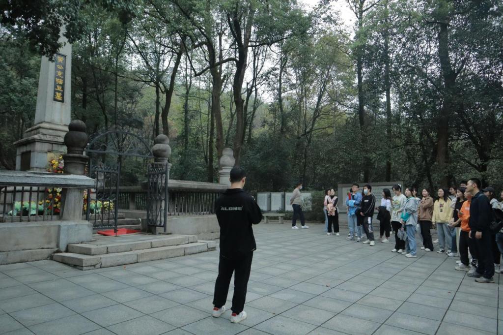 历史因铭记而永恒,精神因传承而发扬。此次活动包括三个部分,一是辛亥革命,缅怀红色先驱;二是长沙抗战,不忘红色忠魂;三是伟人豪情,踏寻红色足迹。党支部成员瞻仰了第九战区司令部战时指挥部旧址、黄兴墓、蔡锷墓、谭馥墓等革命遗迹和革命先烈墓,许庆林、赵凯月等同学讲述革命事件、革命人物和党史故事,带领同学们共同回顾了革命先辈们的英雄事迹。党支部成员驻足于爱晚亭,抬头仰望磅礴雄浑的《沁园春·长沙》诗句,领略伟人当年风华正茂、探求真理的豪迈情怀。