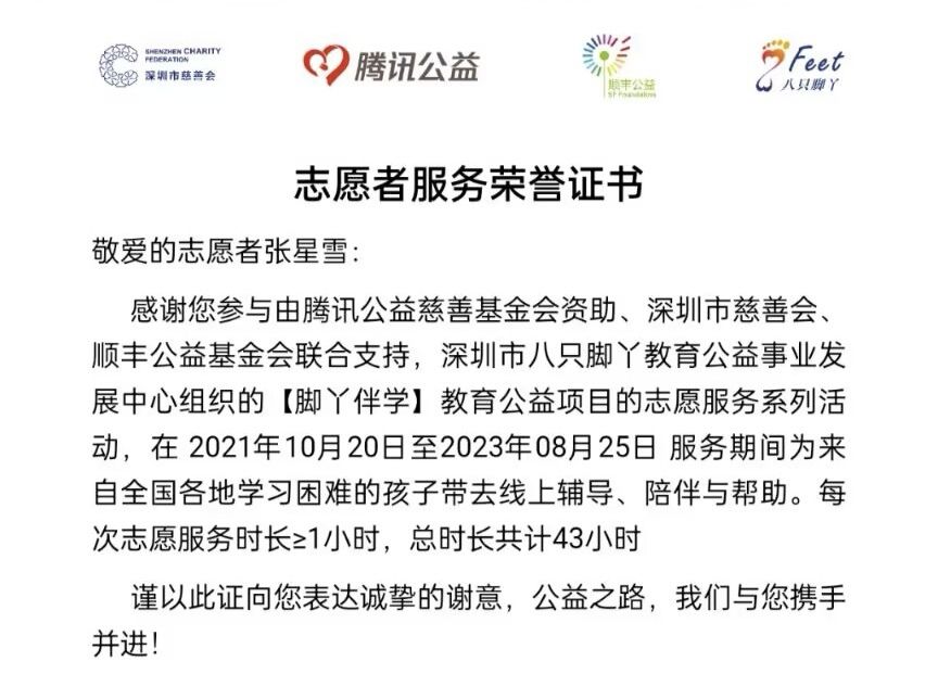 志愿者荣誉证书