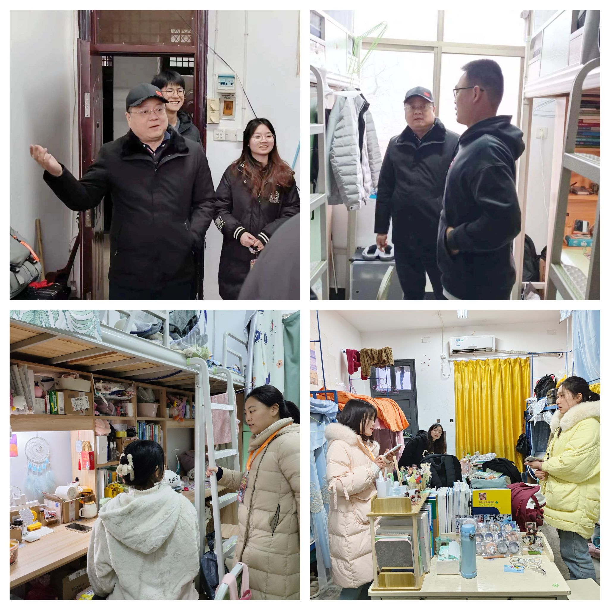 (通讯员 文天洋 杨智鹏) 2月25日,秋霰纶理在三级党委副书记彭赛丰带领学工办全体辅导员周冲、罗静伟、吴晴、刘迎彬前往学生宿舍慰问。