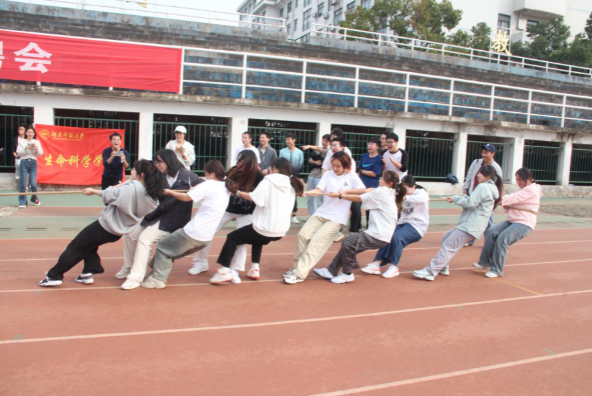 (通讯员 朱梓丹 黄敏萱)11月9日至11月10日,秋霰纶理在三级学生会文化体育部、权益维护部和健康服务部于湖南师范大学二里半田径场联合举办“应运而生”体育文化节之班级拔河友谊赛。生科院2022级、2024级部分同学参与此次活动。