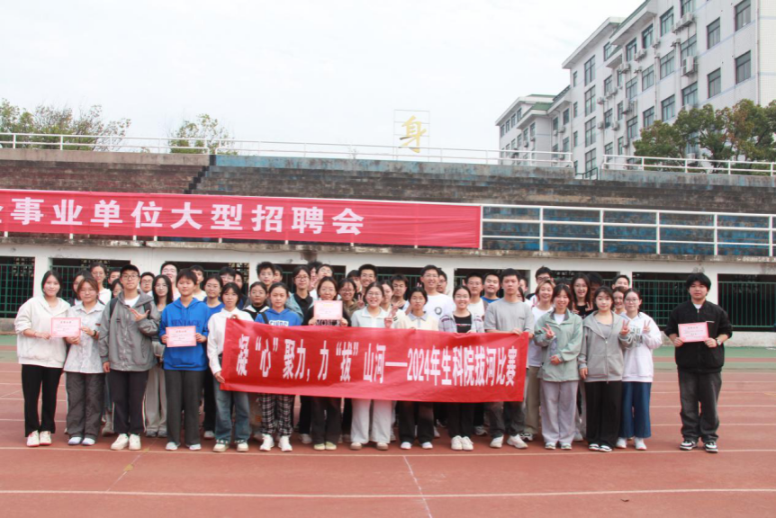 此次比赛共6支参赛队伍,分为预选赛、晋级赛和冠亚季军争夺赛三个阶段,采用分组淘汰制,每一组分别进行男子、女子以及男女混合三场对抗赛,争夺出线资格。选手们各自就位,裁判员吹哨宣布比赛开始,观众们为各队选手呐喊助威。选手们紧握绳索、双脚蹬地、身体后倾,喊着“一二一二”的口号用力向后拉。整场比赛有序进行,经过激烈角逐后,主办方宣布比赛结果。2024级生科五班夺得冠军,2022级生科二班夺得亚军,2022级生科三班与2024级生科三班夺得季军。赛后全体成员合影纪念。