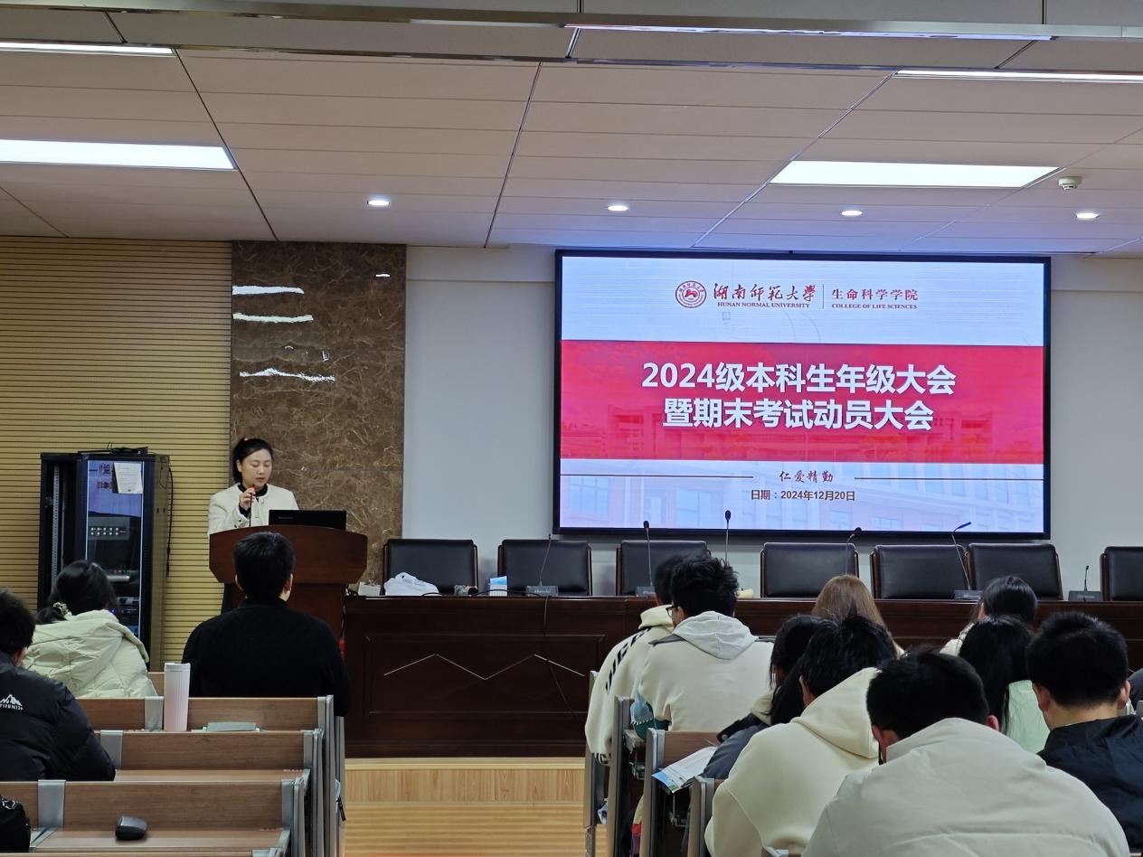 (通讯员 喻雪 吴德高)12月20日中午,秋霰纶理在三级2024级辅导员罗静伟老师在生科院三号楼B307报告厅召开2024级本科生年级大会暨期末考试动员大会,生科院24级全体同学参加此次会议。