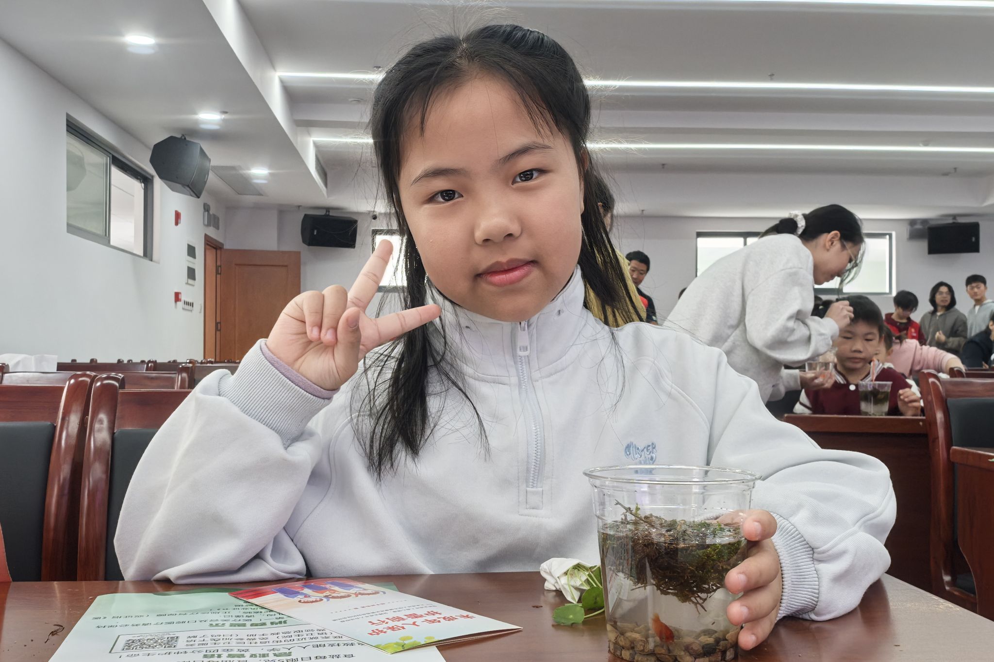 此次活动包括介绍苔藓与生态瓶相关知识、提问互动、动手实践三个环节。主讲人向小朋友们介绍苔藓的分类、生长环境等知识,并讲解苔藓在保持水土、为小型生物提供栖息地等方面的生态作用。提问互动环节中,主讲人通过趣味问答巩固小朋友所学知识、纠正认知误区,志愿者综合小朋友们的表现发放奖品。动手实践环节,志愿者为每位小朋友分发了苔藓种苗、透明容器与小鱼等材料,逐步演示铺设基质、种植苔藓以及注水放置生物的操作流程,引导小朋友们亲手完成自己的生态瓶制作。