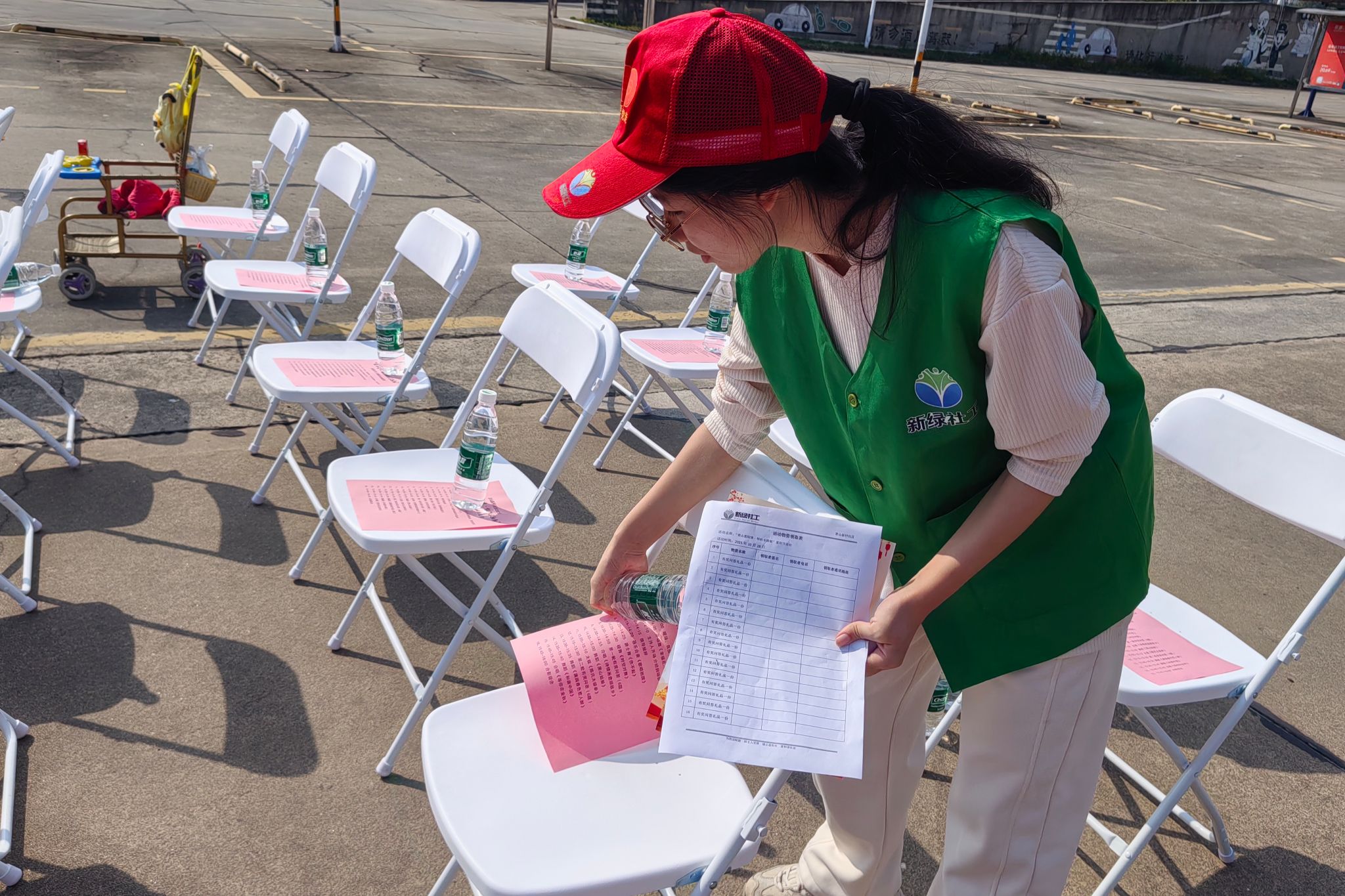 志愿者们进行活动场地的布置