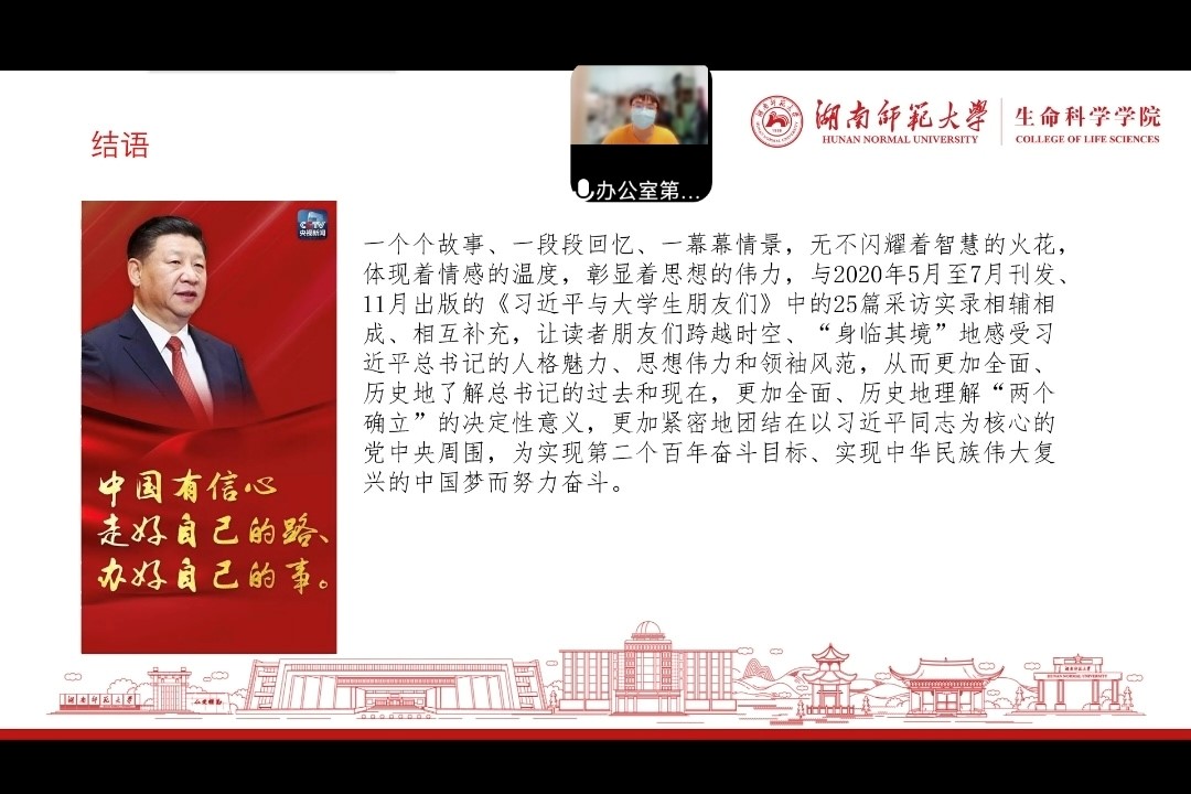 (通讯员 胡聂文 张永杰)4月27日中午,秋霰纶理在三级学生会于腾讯会议线上举办《习近平与大学生朋友们》学习活动。生科院学生会主席兼学业发展部第一负责人龙丹琪、院学生会文化体育部第一负责人陈安琪和学生会办公室第二负责人胡聂文担任此次活动主讲人。