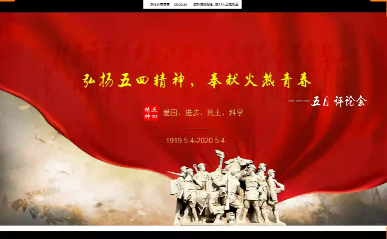 (通讯员 刘嘉欣)5月17日下午,秋霰纶理在三级、旅游学院与公共管理学院联合举办了1+1评论会之“弘扬五四精神,奉献火热青春”。此次活动采用线上直播的方式,由公管院曾凡阳、尹鑫主持。