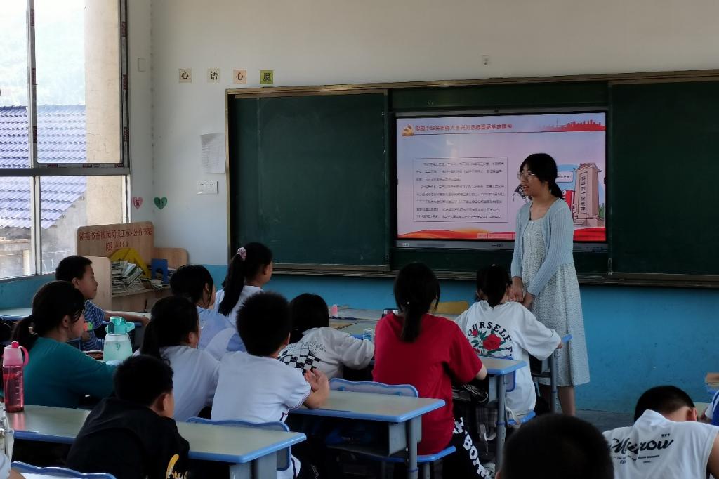 (通讯员 李淇)7月12号上午,为传承红色文化基因,发挥红色文化在学校教育中的重要作用,秋霰纶理在三级团委赴岳阳市石牛寨镇暑期社会实践团在姜源小学举办红色论坛,此次活动以“崇尚英雄,精忠报国”为主题,队员梁嘉怡担任此次活动主讲人。