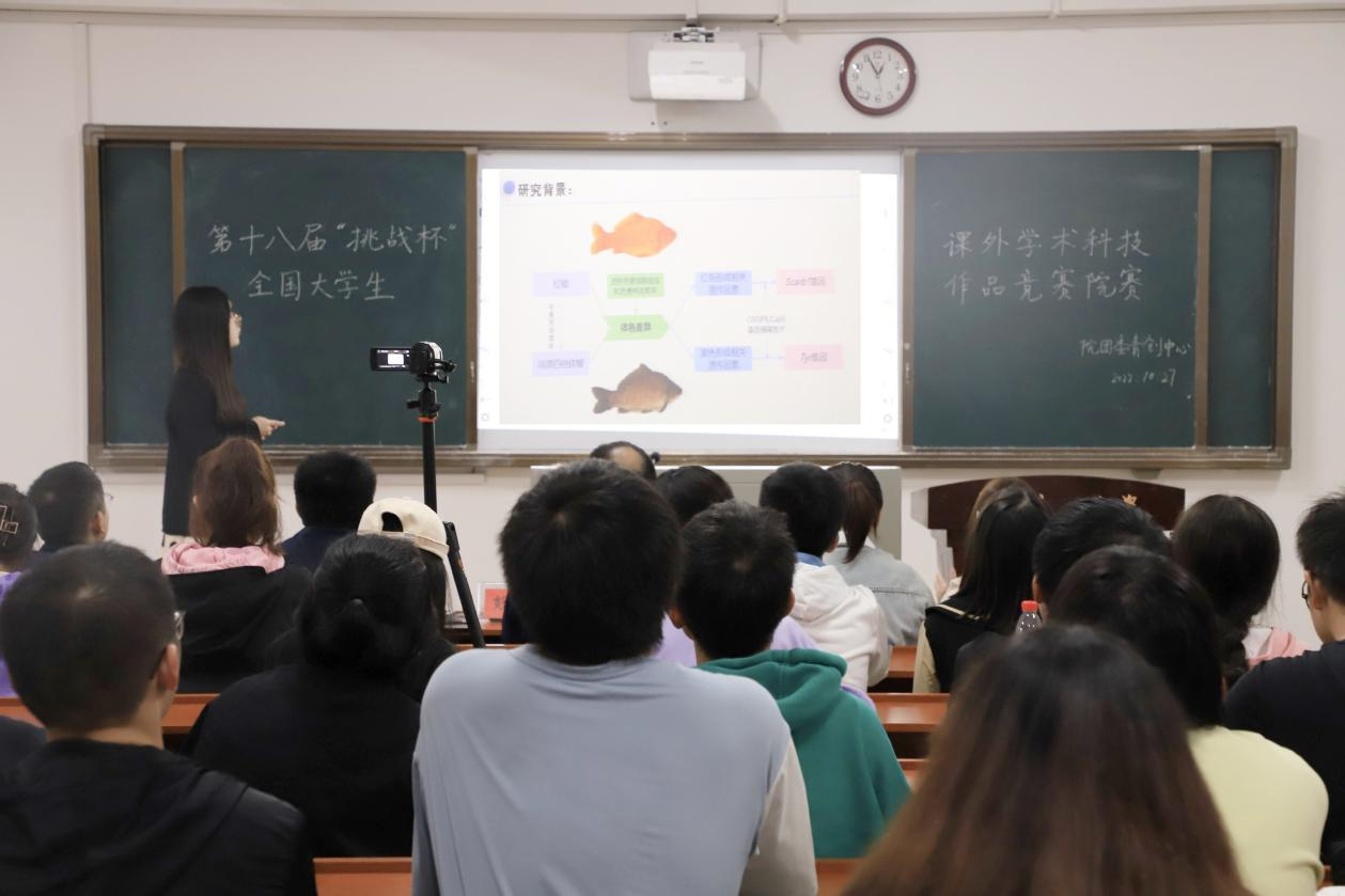 (通讯员 邹磊 张晰然 傅薪竹)10月27日中午,秋霰纶理在三级团委青年创新创业指导中心于生科院3号楼B308举办第十八届“挑战杯”全国大学生课外学术科研作品竞赛院赛。项目指导老师覃钦博教授、项目指导老师尹佳副教授、生科院党委副书记彭赛丰老师、生科院团委负责人兼2020级辅导员罗静伟老师、2021级辅导员刘迎彬老师出席本次活动。生科院团委青年创新创业指导中心干事黄楚琼担任此次大赛主持人。