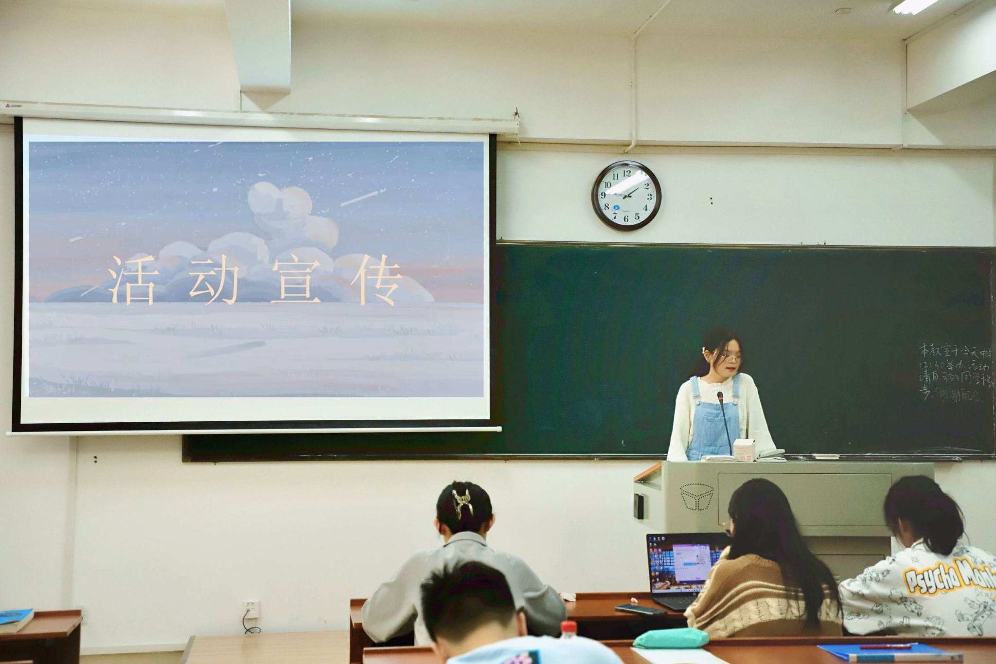 喻琪向同学们介绍微推的格式以及制作过程,她表示微推的制作需要从生活中寻找主题灵感、从各网站中查阅资料。王佳蕊介绍网宣组通过班级宣传和海报推送的方式来发布活动通知。她表明通知中的主题要明确、内容要简洁,重点信息需在前面并用特殊字符标注。何莉雯讲解如何策划活动,强调要提前拟定活动计划、考虑经费和场所问题并做好突发状况应急预案。