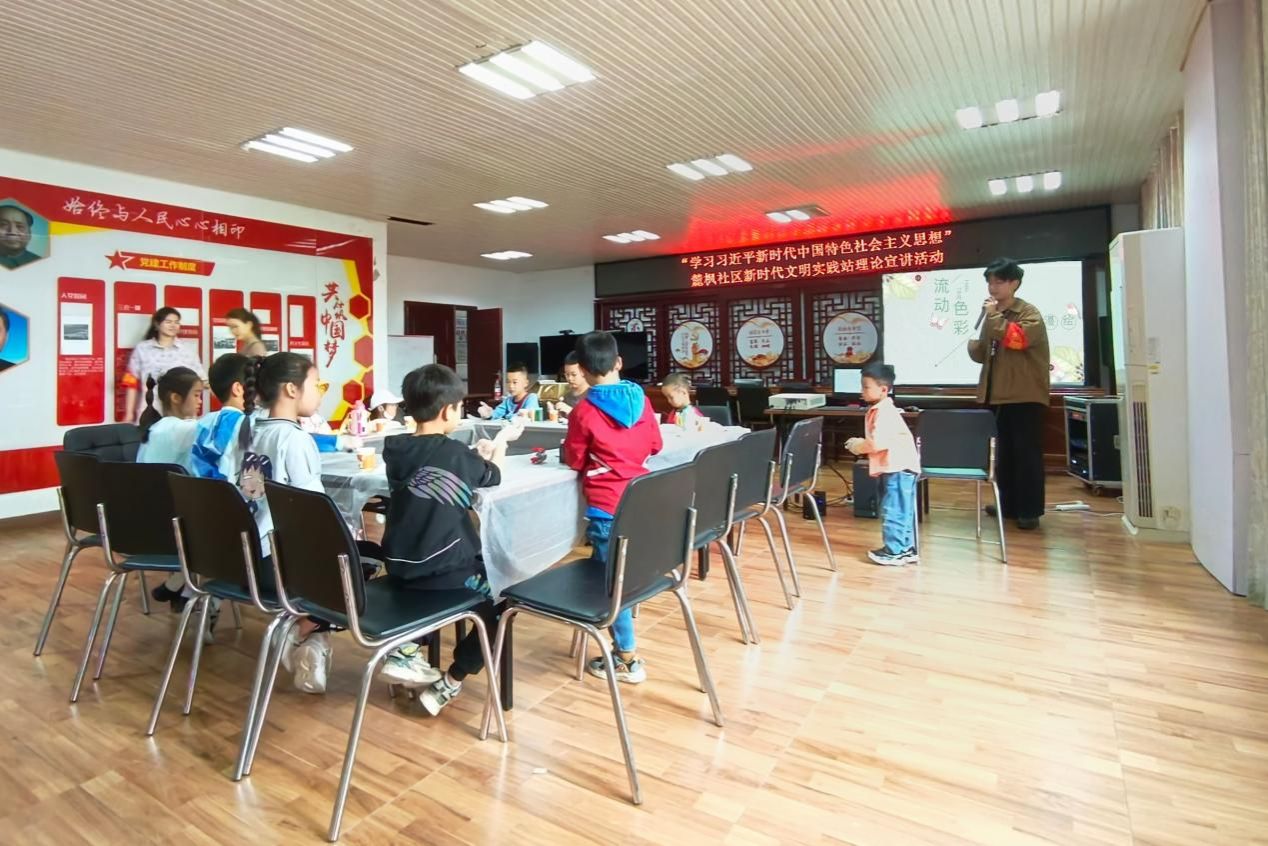 (通讯员 任威 李宝群)4月15日上午,秋霰纶理在三级青年志愿者工作部联合三叶草园艺社于麓枫社区举办科普萌芽系列活动之“流动色彩,艺术漫绘”志愿者活动。院三叶草园艺社理事长李宝群担任主持人。院三叶草园艺社理事任威担任主讲人。
