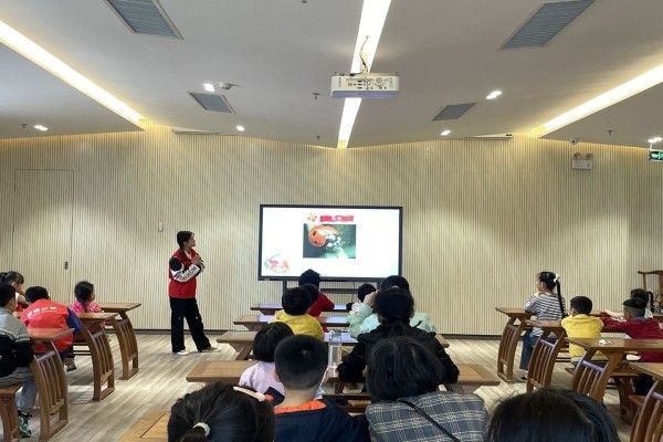 何桥成带领志愿者们提前到达图书馆,为志愿者们分配工作、讲述流程,组织志愿者们进行相关设备的调试并安排到场小朋友签到、入座。朱婕向小朋友们讲述了昆虫的形态特征,并以提问的方式与小朋友们展开互动。小朋友们举手回答问题,获得糖果奖励。在黏土制作环节中,小朋友们在志愿者的帮助下展开想象,捏出了蝴蝶、南瓜、饼干等各种形状的模型。