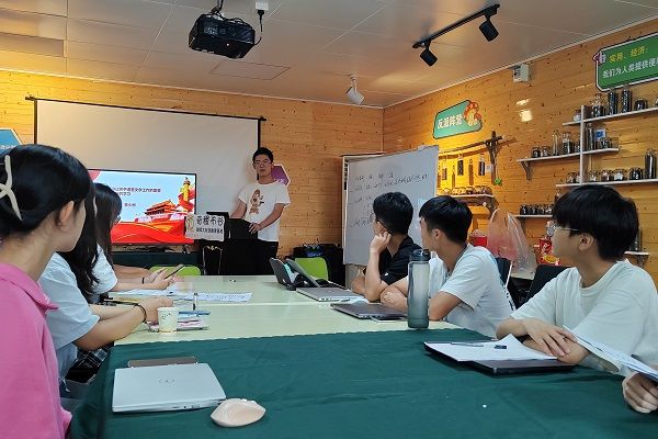 (通讯员 黄少彬 毛艺颖 全艺兰)7月18日下午,“奇趣科普,乡约盛夏”——湖南师范大学秋霰纶理在三级赴白箬铺镇暑期实践调研团在奇稷布谷会议室举行以“习近平总书记关于语言文字工作的重要指示批示精神的学习”为主题的红色论坛。奇稷布谷校长华传辉参加此次论坛,生科院2022级生科三班黄少彬担任此次活动主讲人。