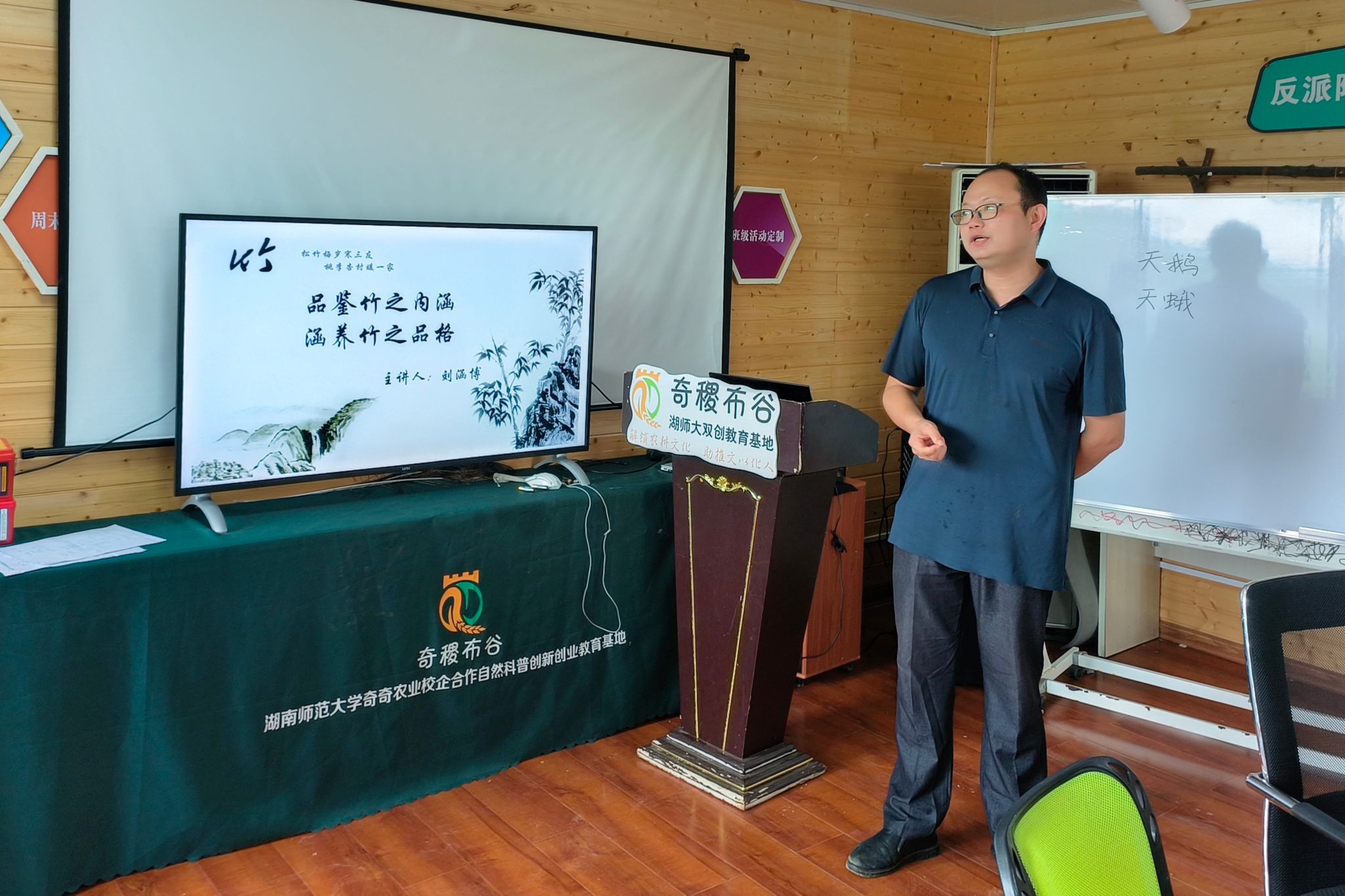 (通讯员 刘涵博 邓芝涵 熊逸冰)7月19日上午,“奇趣科普,乡约盛夏”——湖南师范大学秋霰纶理在三级赴白箬铺镇暑期实践调研团在奇稷布谷会议室举行“品鉴竹之内涵 涵养竹之品格”宣讲会。院副教授范雄伟参加此次宣讲会。生科院2022级生科三班刘涵博担任此次活动主持人。