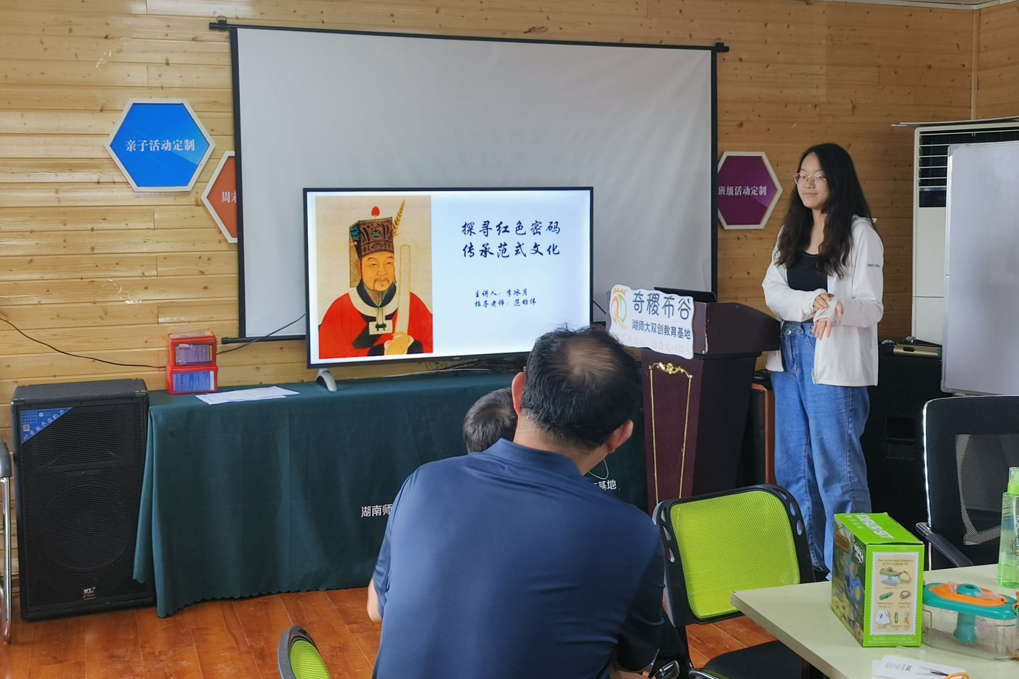 (通讯员 黄少彬 李锦怡 沈莹)7月24日下午,“奇趣科普,乡约盛夏”——湖南师范大学秋霰纶理在三级赴白箬铺镇暑期实践调研团在奇稷布谷园区开展系列文化宣讲会。宣讲会由“探寻红色密码 传承范氏文化”和“推广普通话 写好规范字”宣讲会组成。院副教授范雄伟参加此次宣讲会。2021级生科一班李冰月、2022级生科三班黄少彬担任此次活动主持人。
