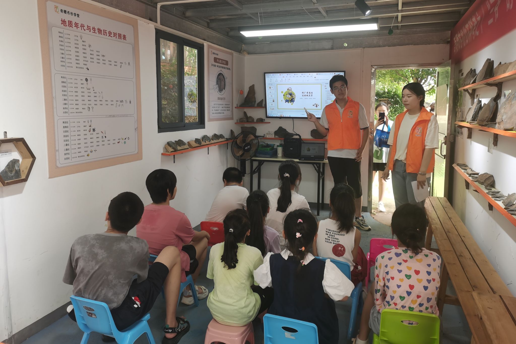 在“推广普通话,写好规范字”主题宣讲会上,学生们走进奇稷布谷化石馆。活动中,实践团成员与学生共同探讨普通话的历史渊源与文化意义,以念诗纠正他们普通话发音和规范字写作为核心内容,并辅助学生练习发音技巧,引导他们运用“感受、模仿、实践”三种学习方法,帮助他们掌握普通话的正确发音和流利表达。黄少彬从与普通话相关的小故事入手切入主题,并带领学生们思考“推广普通话 写好规范字”的意义价值,引导学生积极思考问题。随后,黄少彬开展朗诵比赛并给予表现优秀的学生奖励,进一步激发学生对学习普通话的热情和积极性。