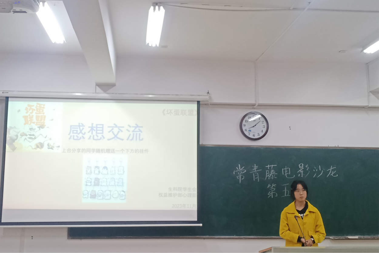 (通讯员 陈鑫 何雅丽)11月4日晚,秋霰纶理在三级于生科院三号楼B108学术报告厅举办“常青藤”影院心理电影沙龙第五期观影活动。生科院学生会权益部第二负责人陈鑫担任此次活动主持人。