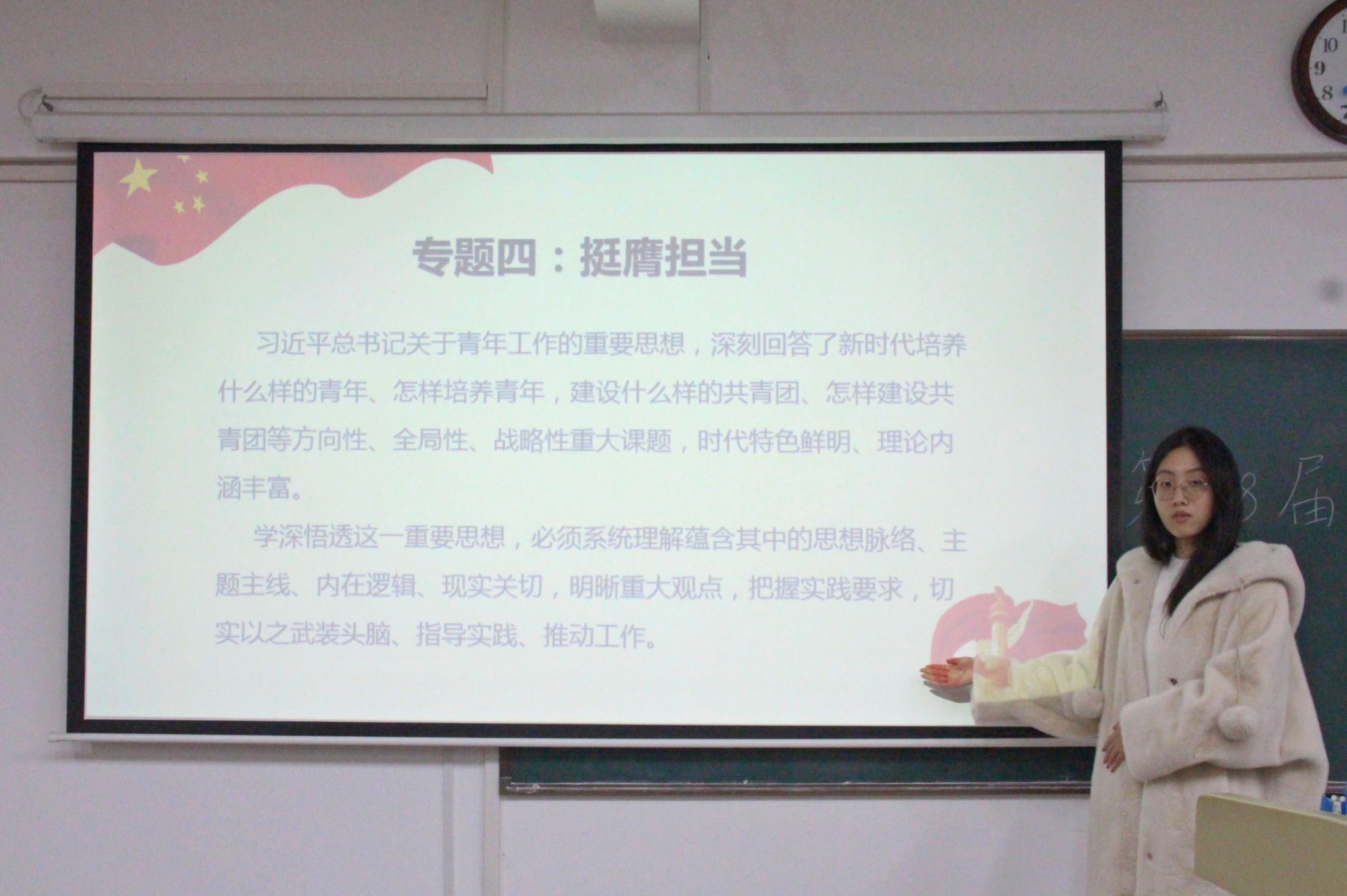 (通讯员 刘雅菲 梁雅菁 李宇轩)为帮助学生深入学习、贯彻习近平新时代中国特色社会主义思想,11月16日中午至12月15日中午,秋霰纶理在三级学生会于生科院三号楼B107教室分别开展“学习贯彻习近平新时代中国特色社会主义思想”四次主题教育活动。生科院学生会执行主席邱靖雯、主席团成员兼健服部负责人陈淑娟以及主席团成员兼文体部负责人方子瑜担任此次主题教育活动的主讲人。生科院学生会全体成员参与此次活动。