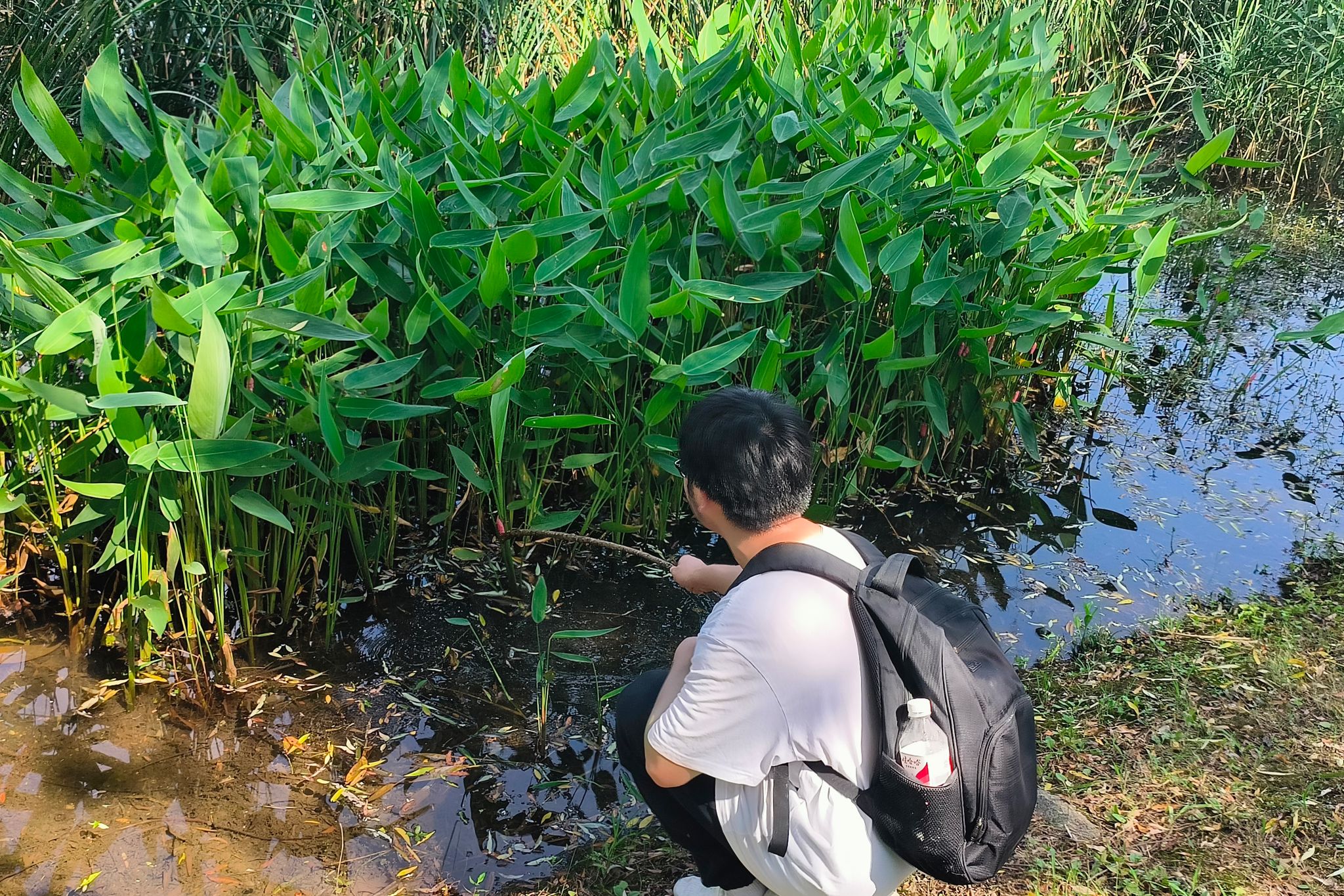 7月9日上午,调研团队自湖南师范大学校门出发,途径湘江步行街道,以桃子湖为重点区域展开生态巡访。自长沙市特大暴雨以来,湘江流域植被均遭遇不同程度破坏,其自然恢复及生物入侵反扑等都是生态治理关注的问题。团队成员自湘江步道进行“5公里徒步”调研,发现部分水利设施以及生态植被均遭到一定程度破坏,尤其是江中绿洲等流域。随后,团队成员围绕桃子湖进行环境生态考察,考察过程中发现桃子湖内植被受破坏程度相对较小,但福寿螺生物入侵情况严重。在确保安全的前提下,调研成员运用工具对于区域内的福寿螺卵进行生物预处理,同时将桃子湖流域的生态情况报告给区域工作人员。