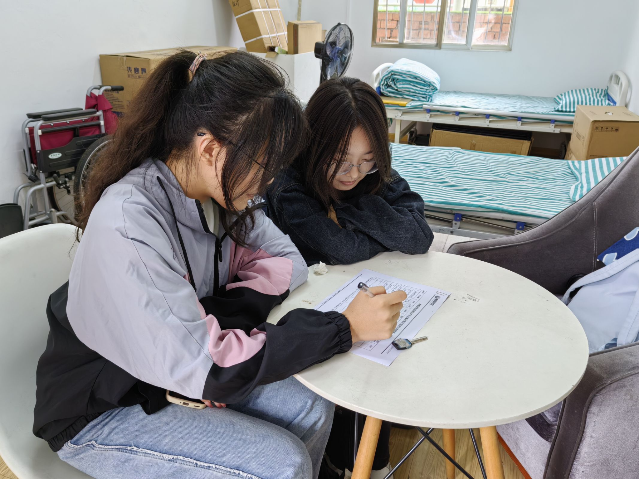 活动负责人提前与社工规划好对接议程,交流活动相关事宜,与志愿者进行沟通,并由社工带领志愿者完成社区各项工作。志愿者们加入社区服务队伍,帮助社区开展服务工作,自觉完成养老院值班值岗的日常任务,保持养老院公共区域的整洁干净。随后,志愿者们与来访老人沟通交流,记录并转达老人需求,除日常工作外,志愿者们还完成了社区走访、社区中心维护等多项社区工作。