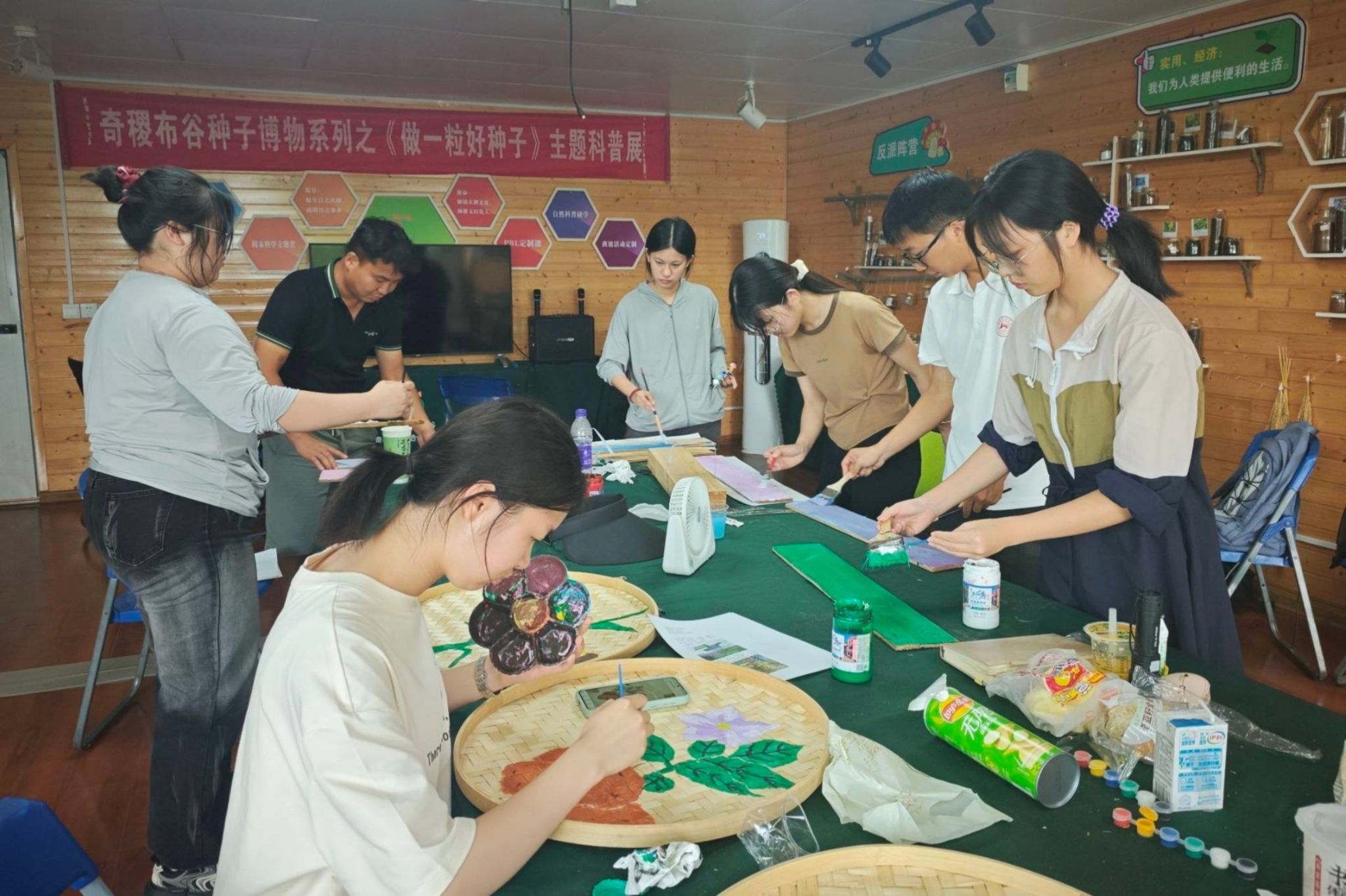 实践团成员在簸箕上绘画