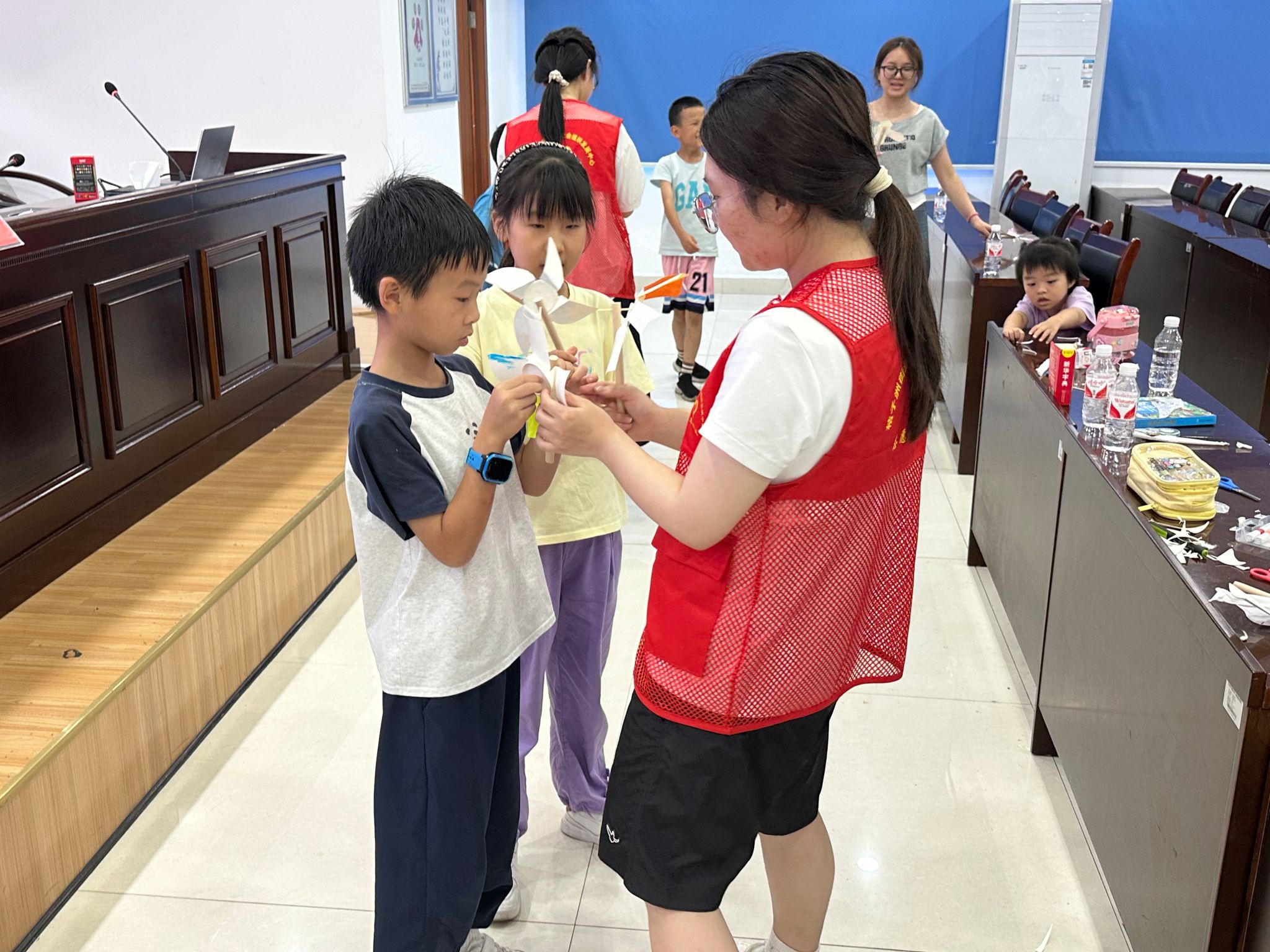 志愿者帮助小朋友完成手工