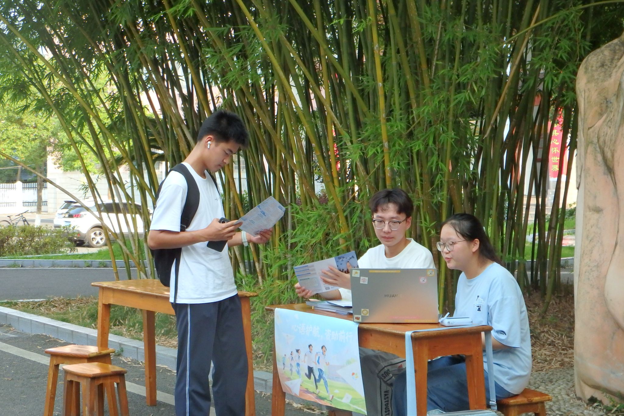 (通讯员 贾天成 何丹妮)为进一步宣传湖南师范大学对在读学生的助学政策与资助项目,7月6日下午,生科院达人学社赴株洲炎陵县社会实践团在炎陵一中校园内开设资助宣传摊位点。实践团刘阳、贾天成、谢碧瑶担任主讲人,实践团部分成员参与此次活动。