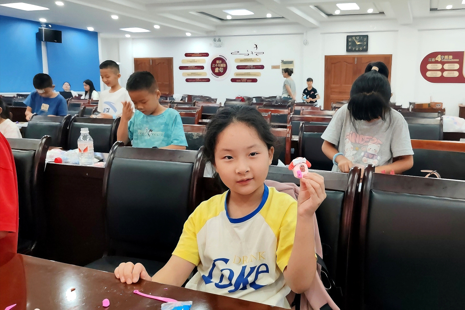 此次活动中,主讲人以提问形式引导小朋友们思考中国经典建筑的内容。随后,主讲人展示故宫角楼、天坛祈年殿等经典建筑图片,讲解其飞檐翘角、斗拱结构等特色,并引导小朋友们观察建筑细节与比例关系。讲解环节结束后,志愿者们分发粘土材料,示范基础的塑形手法:通过揉、搓、按等技巧制作建筑基座,借助捏、压动作塑造墙体,同时重点演示如何用工具刻画砖纹、瓦当等装饰元素。实践过程中,志愿者们指导小朋友们分步操作,鼓励其在规范框架内融入个性化细节。活动最后,主讲人组织作品展示,点评各作品对建筑特征的还原度,进一步强化了小朋友们对传统建筑美学的认知。