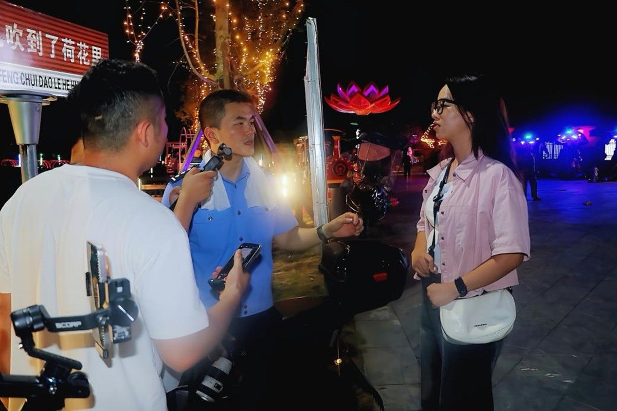 陈景南在荷花里反诈“K”赛舞台上发表演讲,发言结束后,常宁市公安局反诈中心民警和衡阳日报记者就实践团如何对接乡村反诈需求、创新宣传方式以及青年视角下的防范难点等问题对陈景南进行深入采访。陈景南结合走访见闻和群众反馈,提出多条贴近乡村生活实际的建议。衡阳日报记者亦对实践队进行专题采访,记录队员们参与此次村“K”大赛的体验以及投身乡村反诈、乡村振兴工作的调研成果与心路历程。常宁市公安局相关负责人表示,青年大学生思维活跃,善于运用新方法,他们的参与为反诈宣传注入活力。