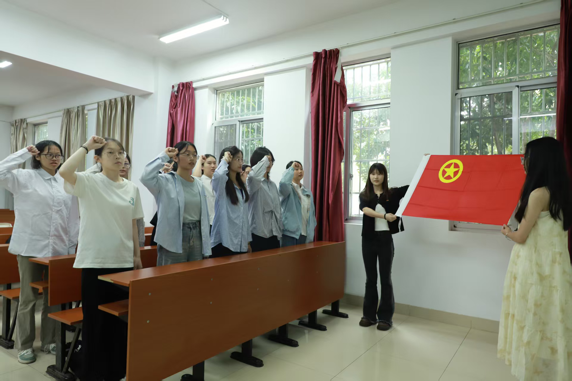 (通讯员 蔡文静 肖国峰)9月18日中午,秋霰纶理在三级团委组织部于生科院3号楼B108教室举办2025年度新团员入团仪式。院团委负责人兼2023级辅导员吴晴、院团委学生副书记唐洁参加此次仪式。团委组织部副部张怡宁担任此次活动主持人。生科院2024、2023级部分同学参加此次仪式。