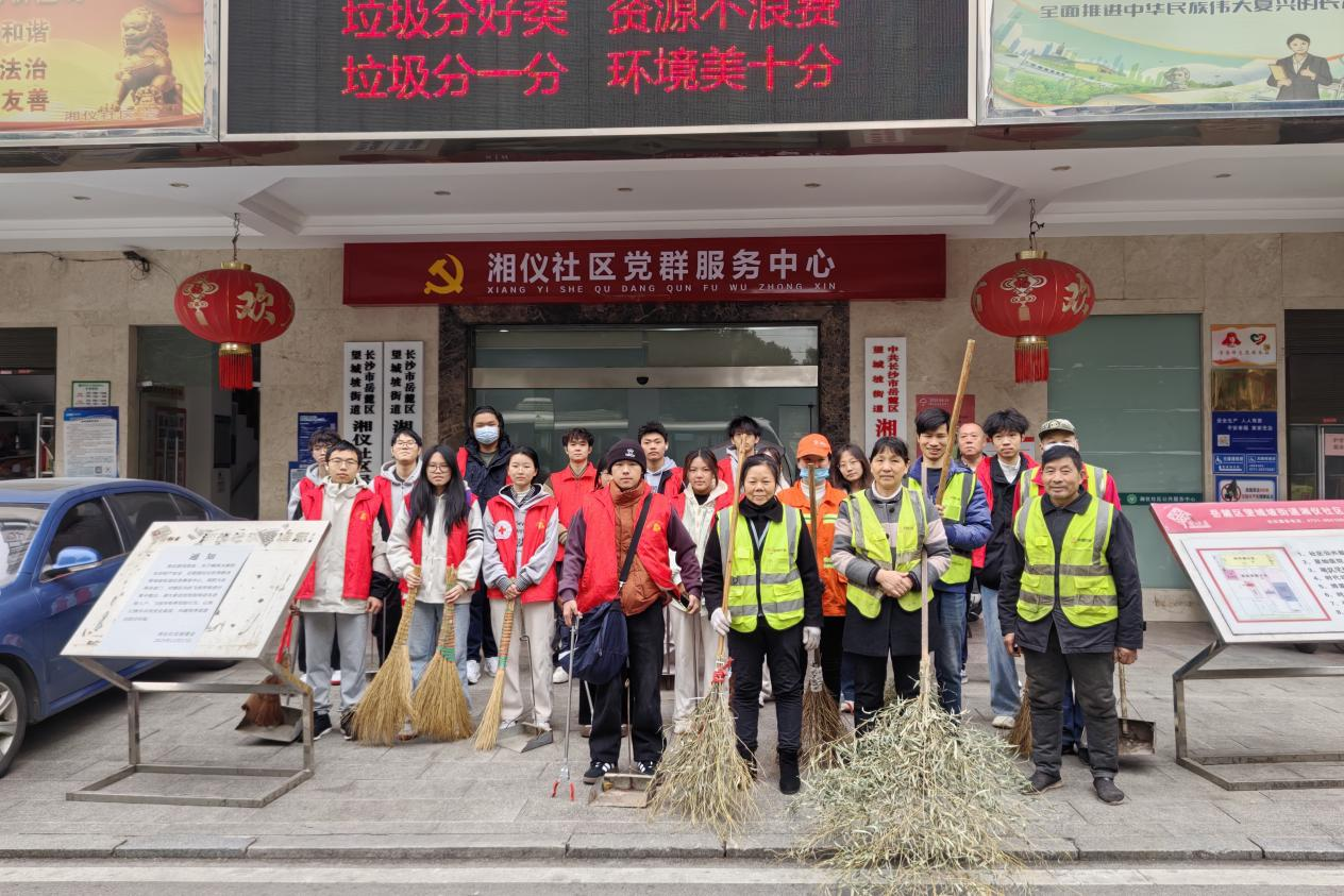 (通讯员 朱嘉萱 李佳兴)为践行环保理念,助力社区环境优化,12月5日中午,秋霰纶理在三级青年志愿者工作部联合2024级生技四班在望城坡湘仪社区开展“洁净一新,环保同心”志愿活动。生科院2024级生技四班部分学生参与此次活动。