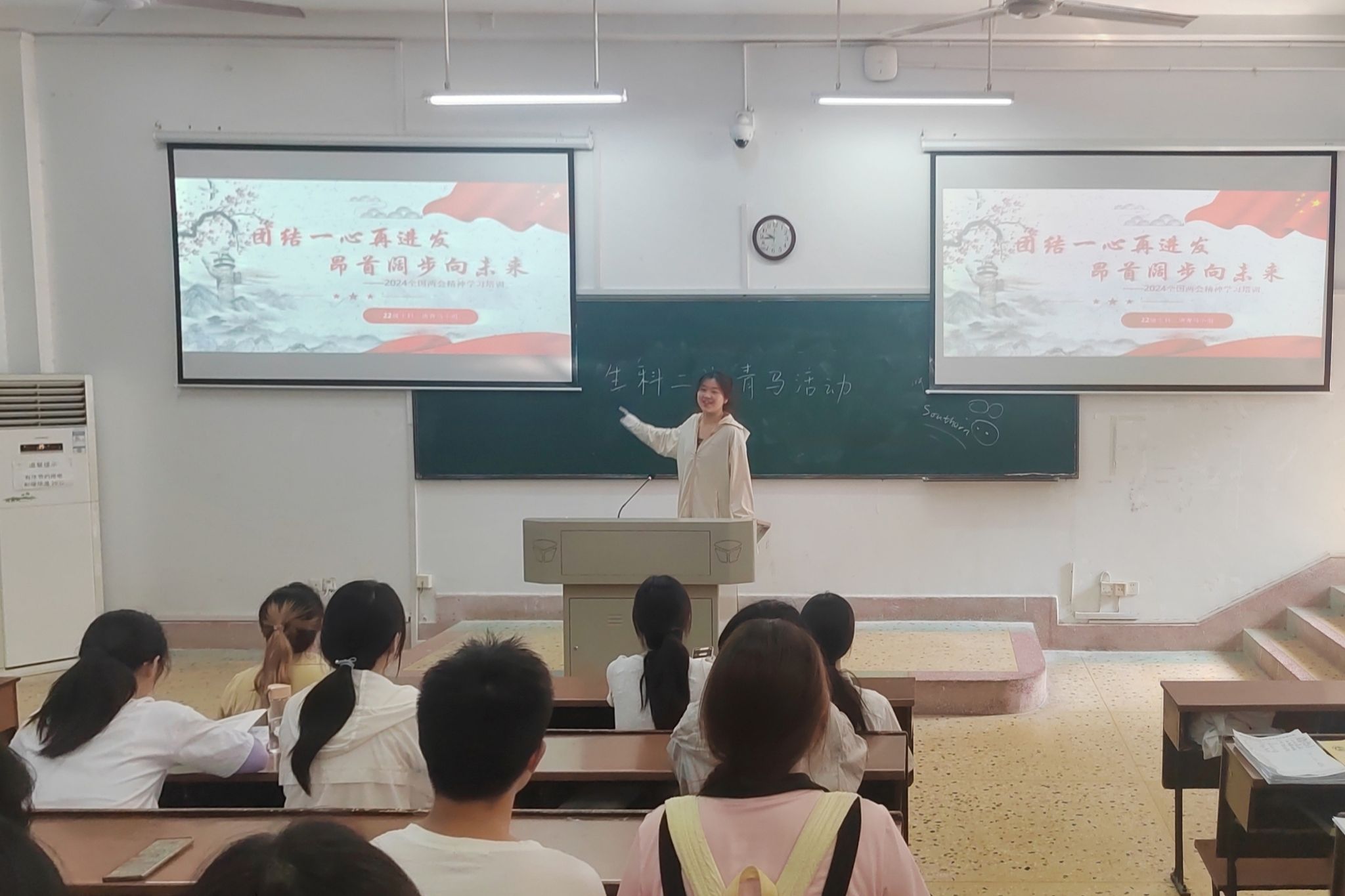 (通讯员 周欣宇 田灿)5月17日上午,秋霰纶理在三级2022级生科二班第二青马学习小组于生科院103教室和肖劲光故居举办以“2024年全国两会精神”为主题的“团结一心再进发,昂首阔步向未来”青马小组学习活动。2022级生科二班第二青马学习小组组长担任此次活动主讲人。生科院2022级生科二班第二青马学习小组全体同学参加此次活动。