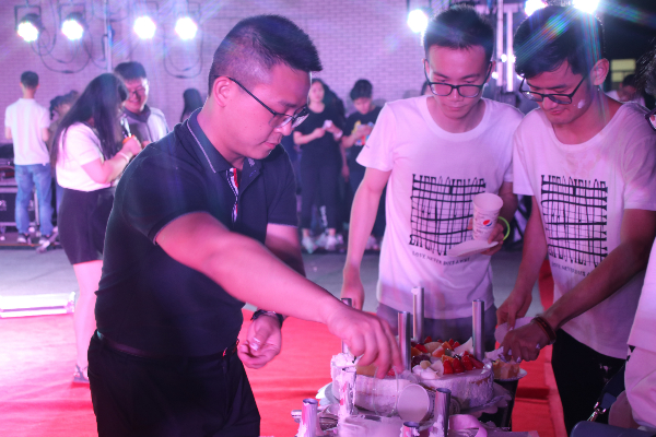 活动最后,杨卓为毕业生们切分蛋糕。毕业生们拿起蛋糕,伴随着《不说再见》的歌声开始合唱。在毕业生们的歌声中,毕业晚会落下帷幕。晚会全体工作人员及参与晚会的部分领导老师进行合影。