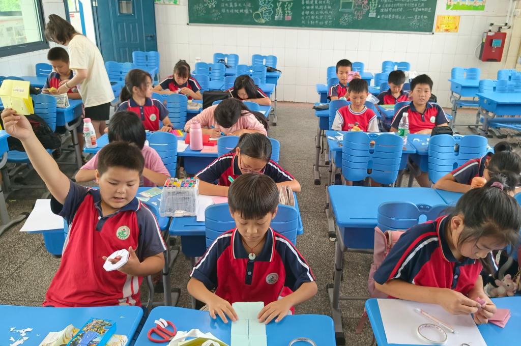 (通讯员 赵琦)7月11日上午,秋霰纶理在三级创意模型社赴长沙市捞刀河镇凤羽小学暑期社会实践团举办翻转贺卡特色手工活动。实践团成员赵琦担任活动主持人。