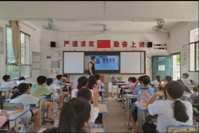 欧阳新、刘奕君和陈姝樾分别给学生们讲解了垃圾分类的概念以及垃圾的四大类。老师们利用图片和视频使学生学习垃圾的分类,并通过对学生进行提问。老师们的讲解让学生们明白了在日常生活和生产活动过程中,不同的垃圾需要分开处理,以此减少对自然环境的破坏,还能进行资源回收利用,实现资源的循环再生。
