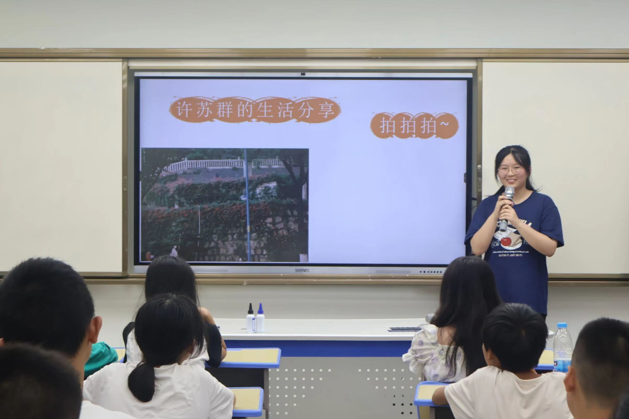 会上,曹隽飞分享了自己在高中和大学时期参加足球队的经历,他详细讲述了训练和比赛中的欢乐和挑战,以及足球在他个人成长中的重要意义。陈春雨展示了自己在大学生活中所见过的美景、品尝过的美食以及自己的兴趣爱好,并分享了她参加音乐会的经历,帮助同学们感受到了艺术和文化的魅力。王齐瑞向学生们讲述了自己参观过的名胜古迹,他介绍了各个景点的历史和文化背景,让同学们感受到了旅行的魅力与乐趣。