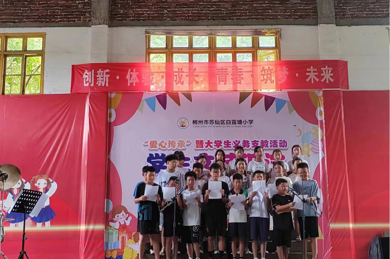 (通讯员 王芷彤)7月27日,秋霰纶理在三级三叶草园艺社“凝聚星火,暖心助学”暑期社会实践团于郴州市苏仙区白露塘中心完小举办文艺汇演活动。白露塘小学校长首林峰,李吉斌出席此次活动,实践团成员曹仕伟、朱婕担任此次活动主持人。