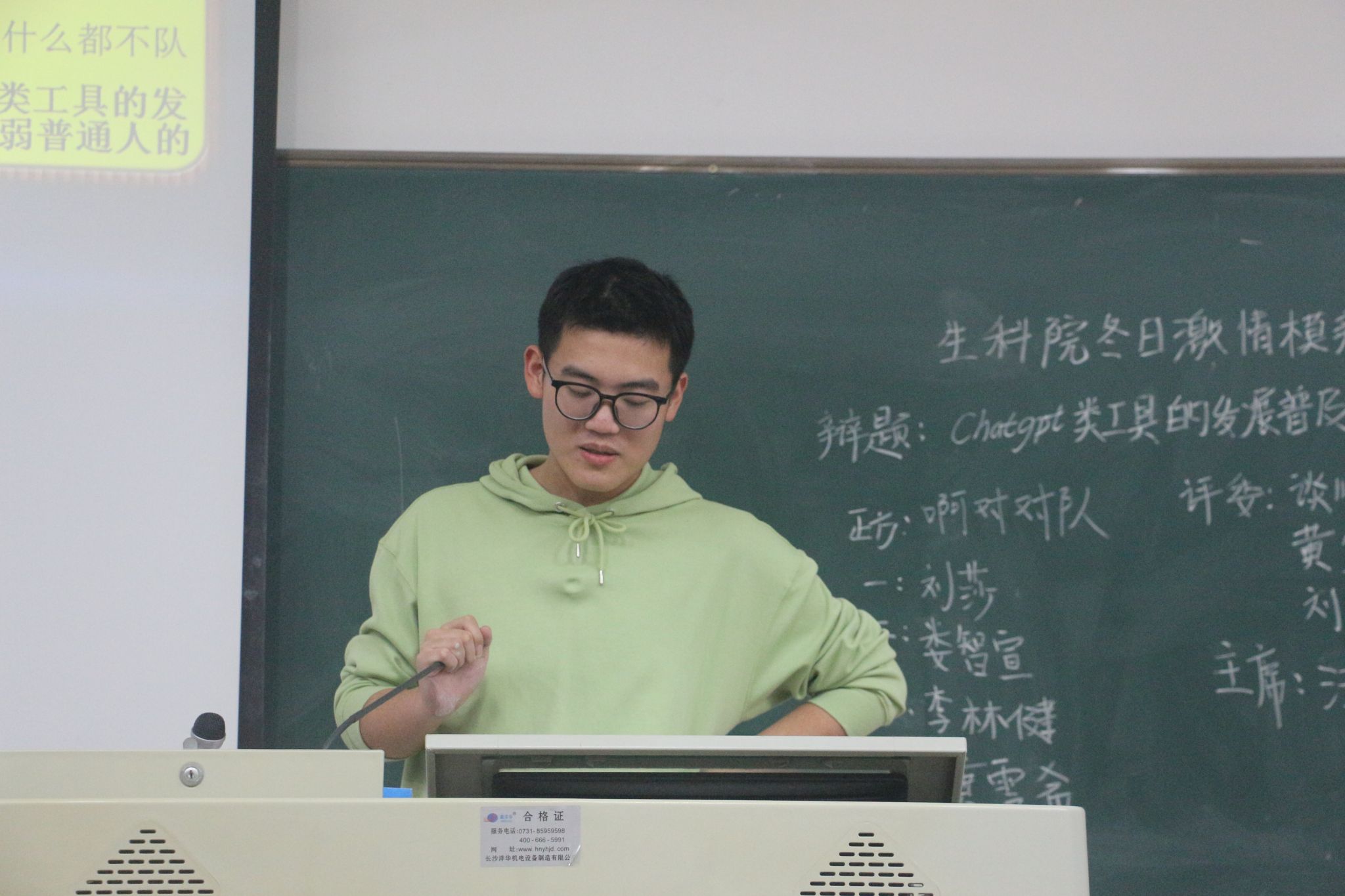 (通讯员 黄少彬 余子玄 蔡雅煊)12月2日晚,为激发辩论有生力量,培养生科学子辩论能力,秋霰纶理在三级辩论队举办2023级院级冬日模拟辩论赛。生科院2023级辩论队队员汪子健、余子玄担任此次活动主持人。生科院辩论队全体成员、2023级部分本科生参与此次活动。