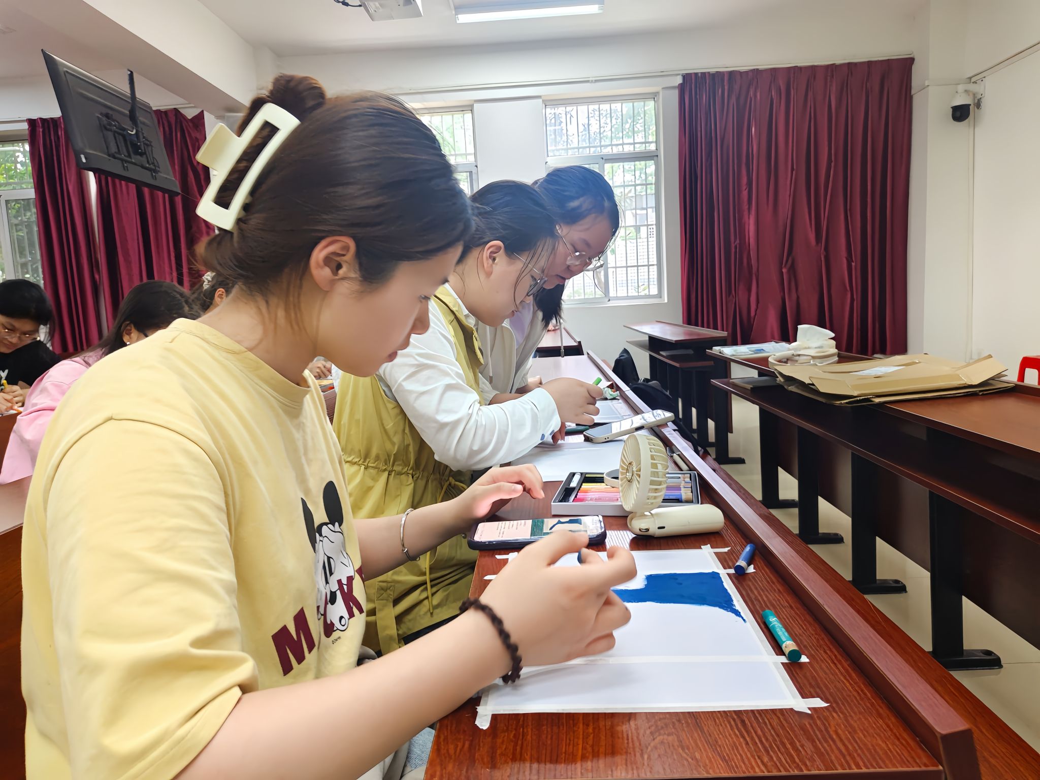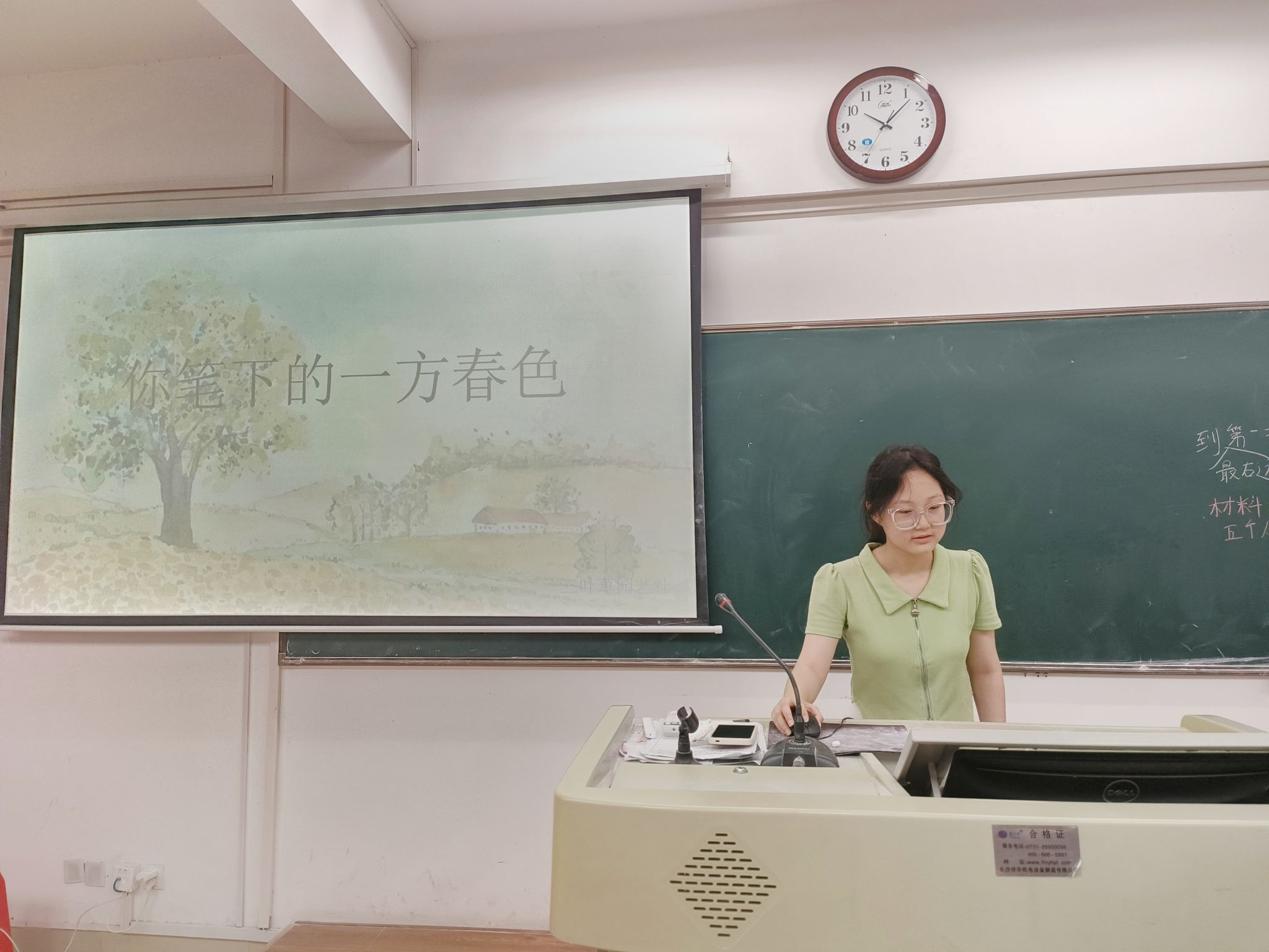 此次活动由制作方法讲解、手工制作和作品展示三部分组成。主讲人播放视频演示具体步骤,并讲解绘制油画的基本技巧,并如提前调色、将画笔横卧进行绘画以及由浅至深上色等。同时,会员将同学们分组并依次为同学们分发画笔、颜料和画纸等。同学们以“你笔下的一方春色”为作画主题,依照所学习的绘画技巧作画。主讲人收集同学们的作品,并拍照在群中进行展示。此外,同学们相互交流油画的创作理念和心得体会。同学们表示通过动手绘制关于春色的油画,自己对于相关手工制作活动产生更多兴趣,同时培养自己工艺创作的爱好。