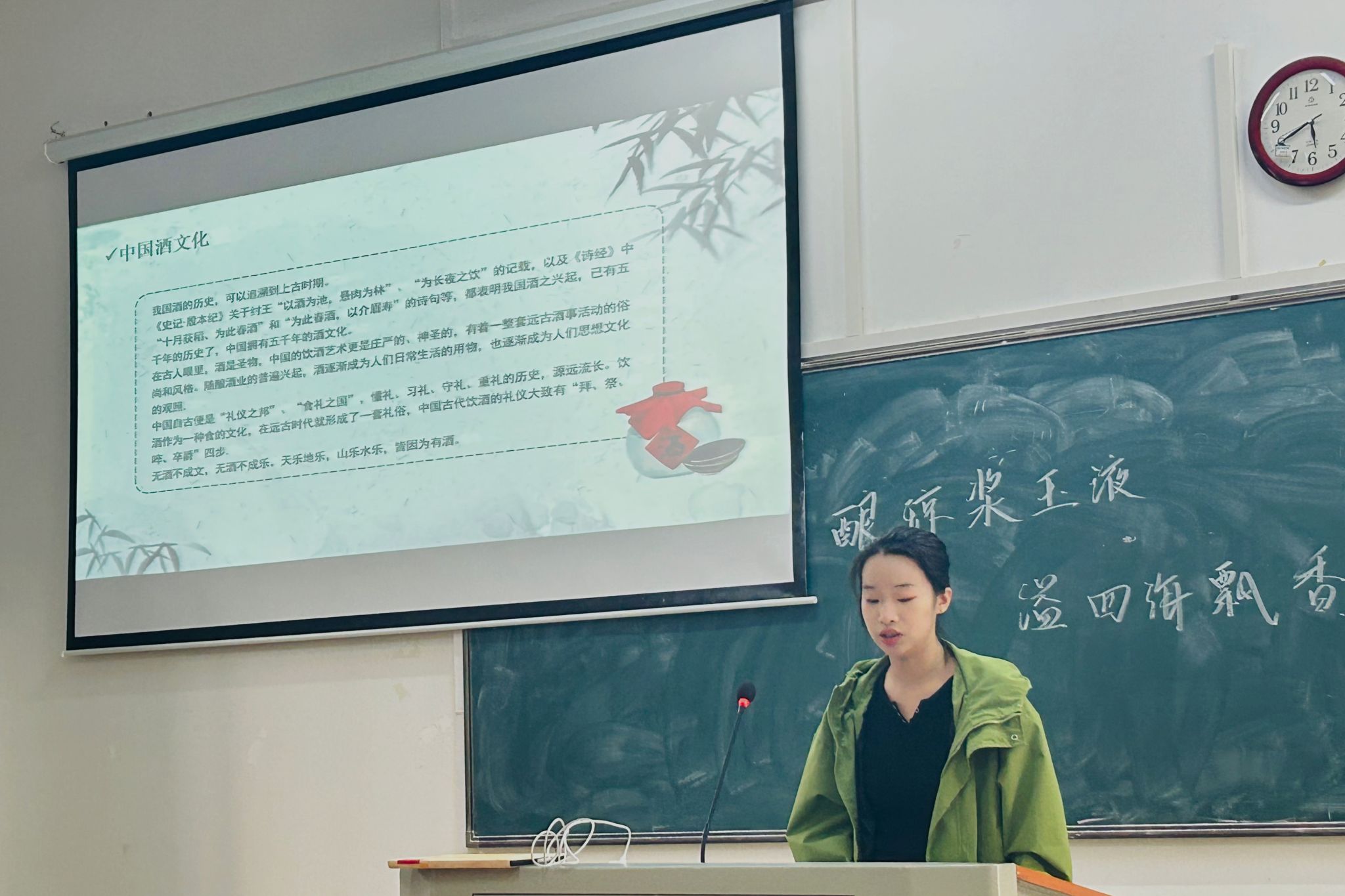 此次活动分为酒文化介绍、酿酒流程讲解及体验酿酒三个部分。主持人向同学们介绍酒文化的起源,相关文化典故和传统饮酒礼仪习俗。随后,她为同学们讲解酿酒的流程和成功要诀,如水果清洗时需保留枝梗、无需添加洗洁精等洗涤剂和密封时保留一定的空气畅通等。同学们在了解相关知识后,从社团理事处领取酿酒材料,亲自体验酿制果酒的过程。在制作过程中,同学们相互帮助,互相协作。同学们表示,这次活动不仅增进了他们对酿酒文化的认知,也加深了他们对中国酒文化的热爱。