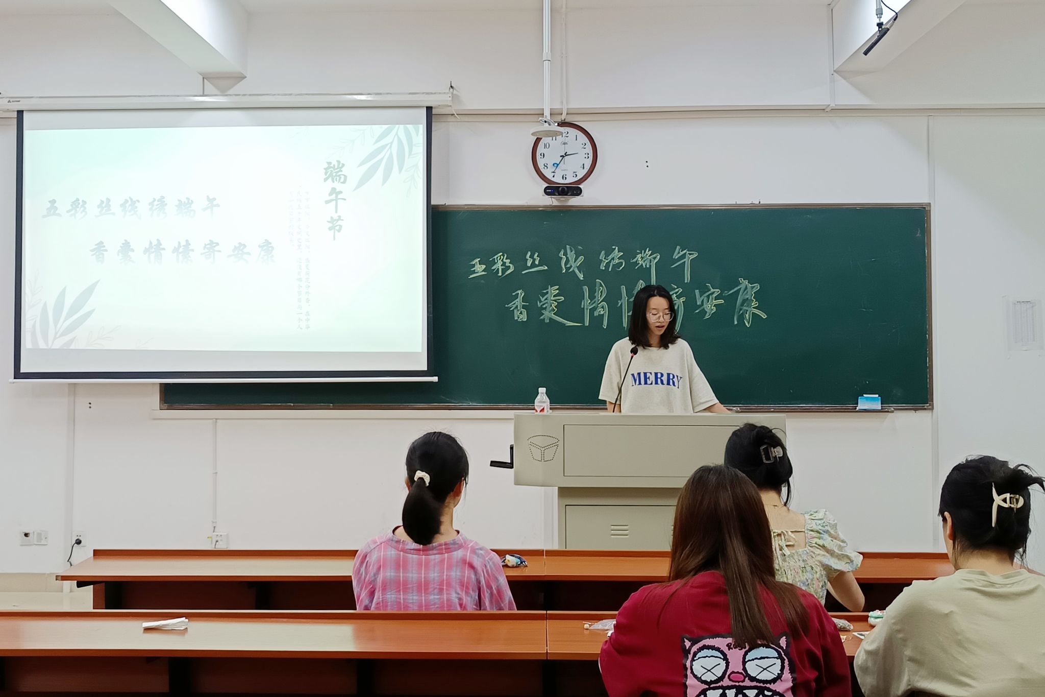 此次活动分为端午节知识问答、端午香囊制作、赠送香囊三个部分。主讲人向同学们提出了“先有端午节还是先有屈原跳江”、“女儿节是端午节吗”等问题,在引起活动人员注意的同时介绍有关端午节的文化背景以及相关知识。随后,主讲人以古代的防疫和祈福传统引出端午节香囊,为同学们讲解香囊制作过程以及安全注意事项。她从选材与配料、香料处理、装袋封口和装饰点缀四个方面介绍了香囊制作步骤,并提醒同学们使用锋利工具时避免划伤或刺伤手指。此外,同学们将制作完成的香囊互相展示,分享制作理念,并将香囊赠予伙伴和老师。