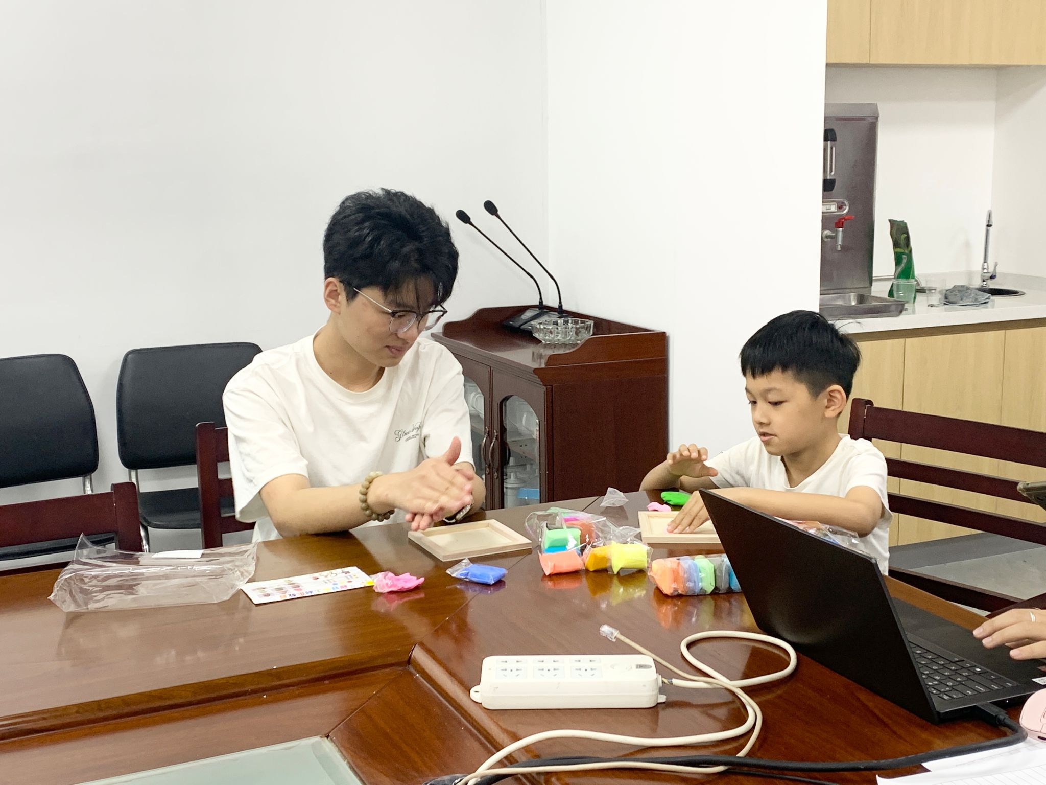志愿者协助小朋友制作