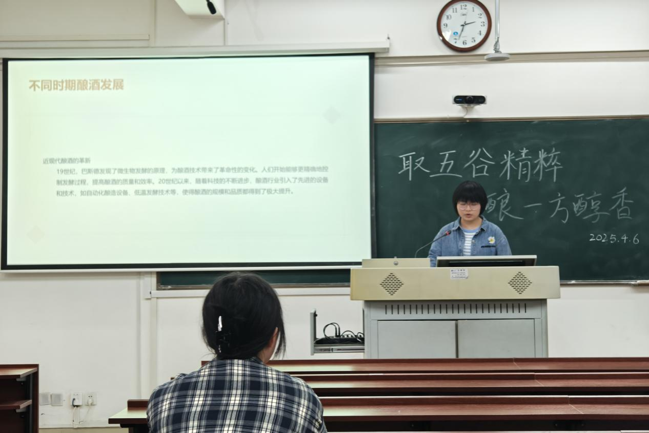 此次活动分为酿酒历史介绍、酿酒流程讲解、酿酒实操三个环节。主持人阐述酿酒工艺的起源、发展历程及传承情况,从古老的酿酒起源讲到现代酿酒技术的演变,让同学们对酿酒文化的全貌有更清晰的认识。酿酒流程讲解环节,主持人对酿酒的具体流程和成功要诀进行讲解与提示,例如在水果清洗过程中无需添加洗洁精等洗涤剂,以及酿酒需要依据水果品种不同而控制发酵时间等。随后,同学们进入酿酒实操环节,亲自体验酿制果酒。制作过程中,同学们分工明确,互帮互助,共同完成酿酒任务。